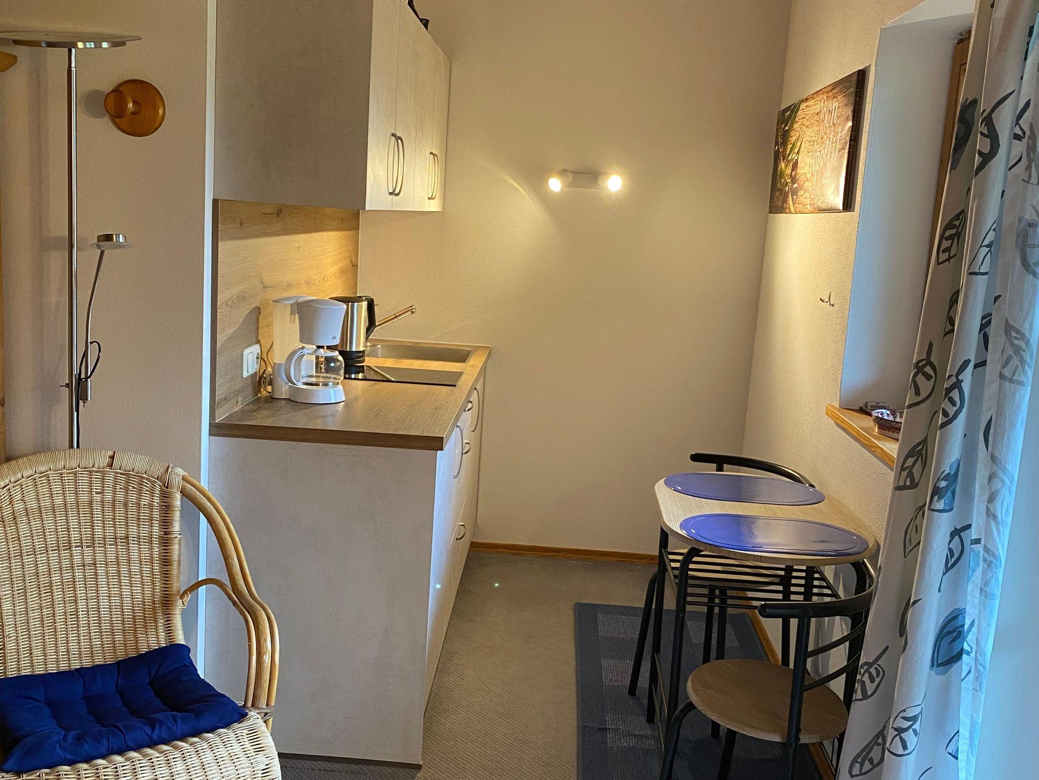 Gemütliches Appartement in ruhiger und sonniger Ortsrandlage mit traumhaftem Bergpanoramablick.Das Appartment ist mit einer kleinen Küche ausgestattet. Die Küche bietet Geschirr und Besteck, sowie Kochutensilien, eine Filterkaffemaschine, Toaster sowie einen 2-Plattenherd. Die Lage ist der perfekte Ausgangspunkt für viele Wander- und Radtouren. Circa 12 Gehminuten ins Ortszentrum mit Einkaufsmöglichkeiten für den täglichen Bedarf. Nur wenige Gehminuten zum idyllisch gelegenen Auerbach mit seinen weitläufigen Wanderwegen entlang des Ufers. Selbstverständlich bieten wir Ihnen das WLAN kostenlos.