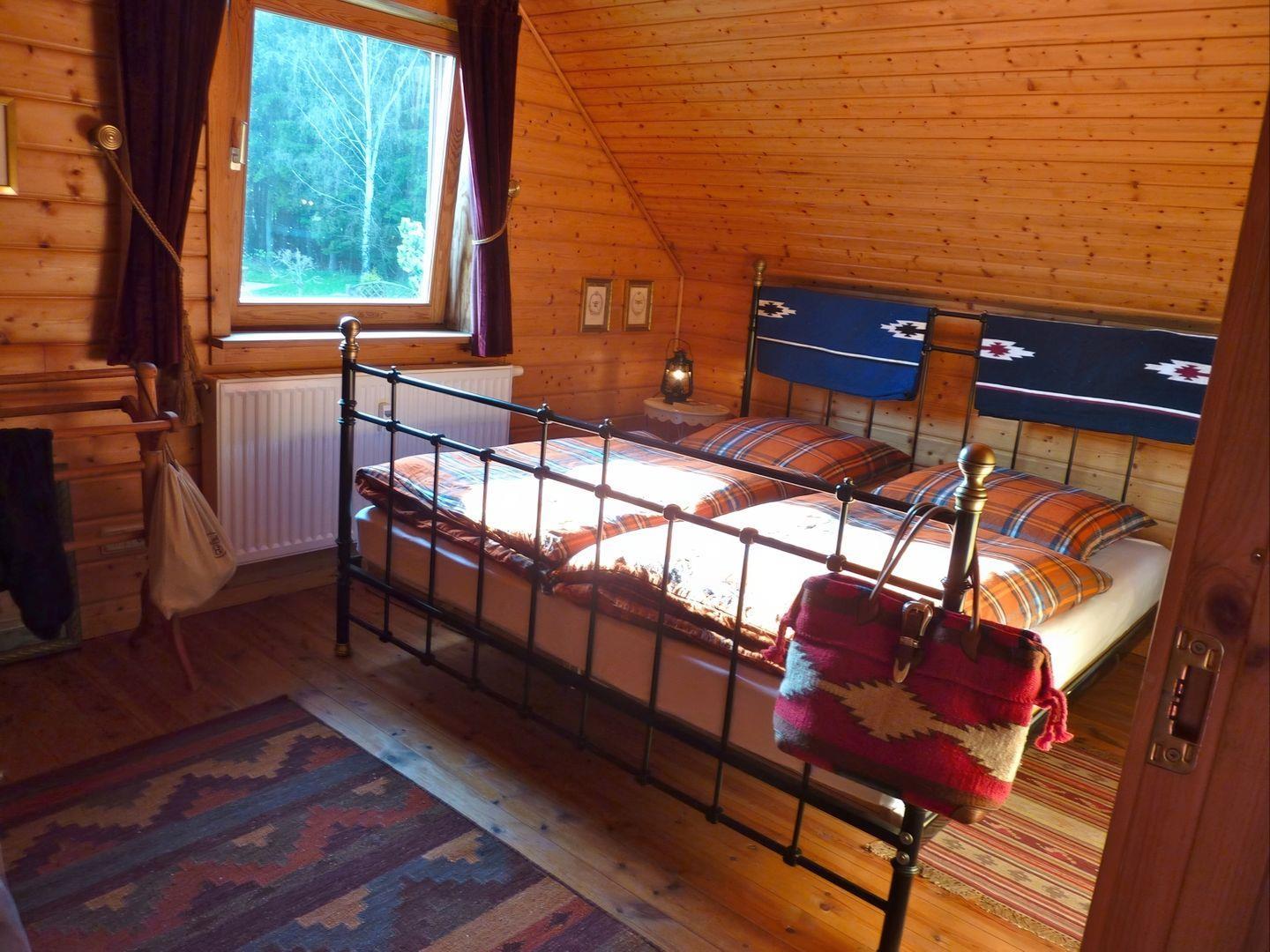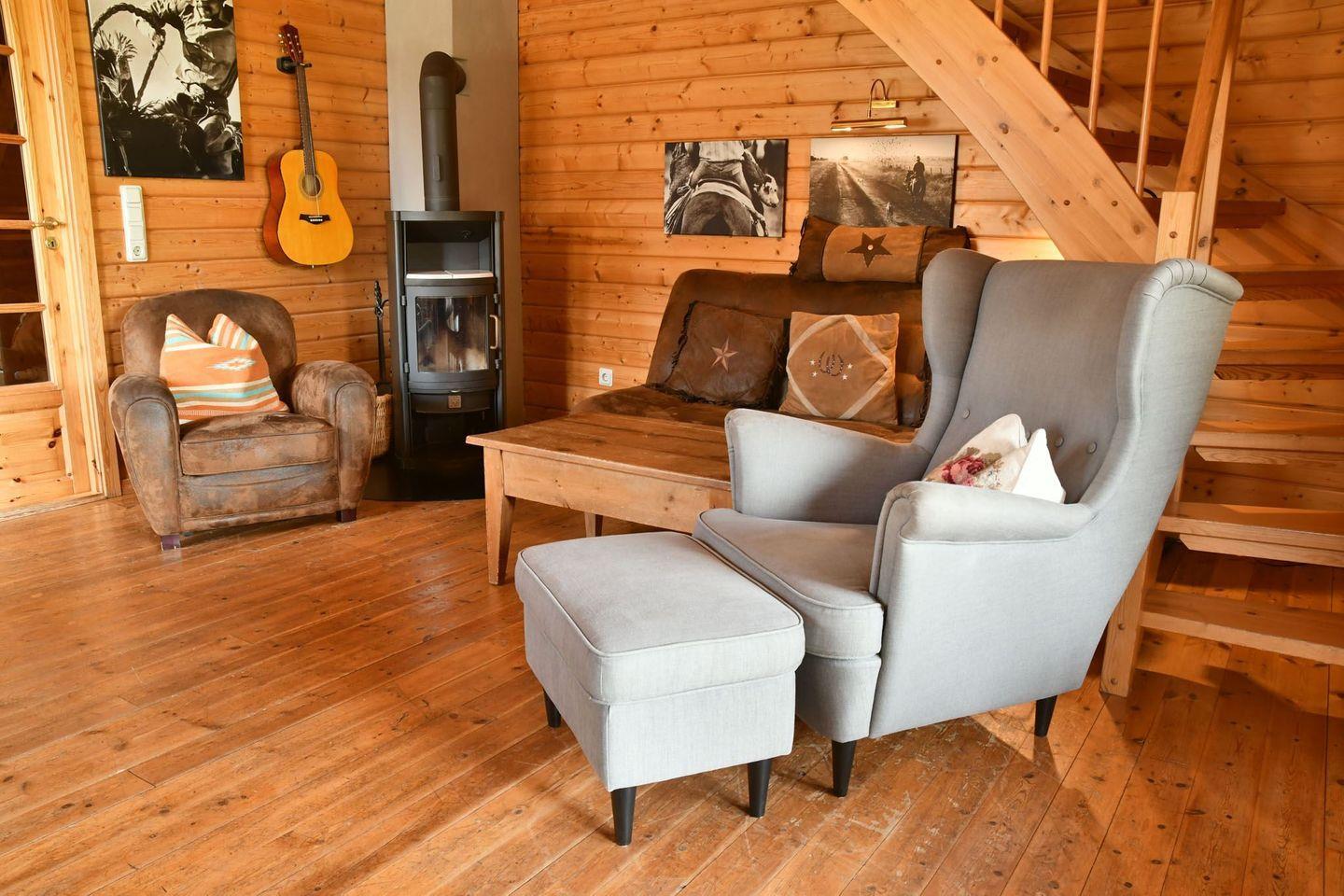 Gemütliches Ferienhaus mit Kamin im Westernstiel eingerichet.