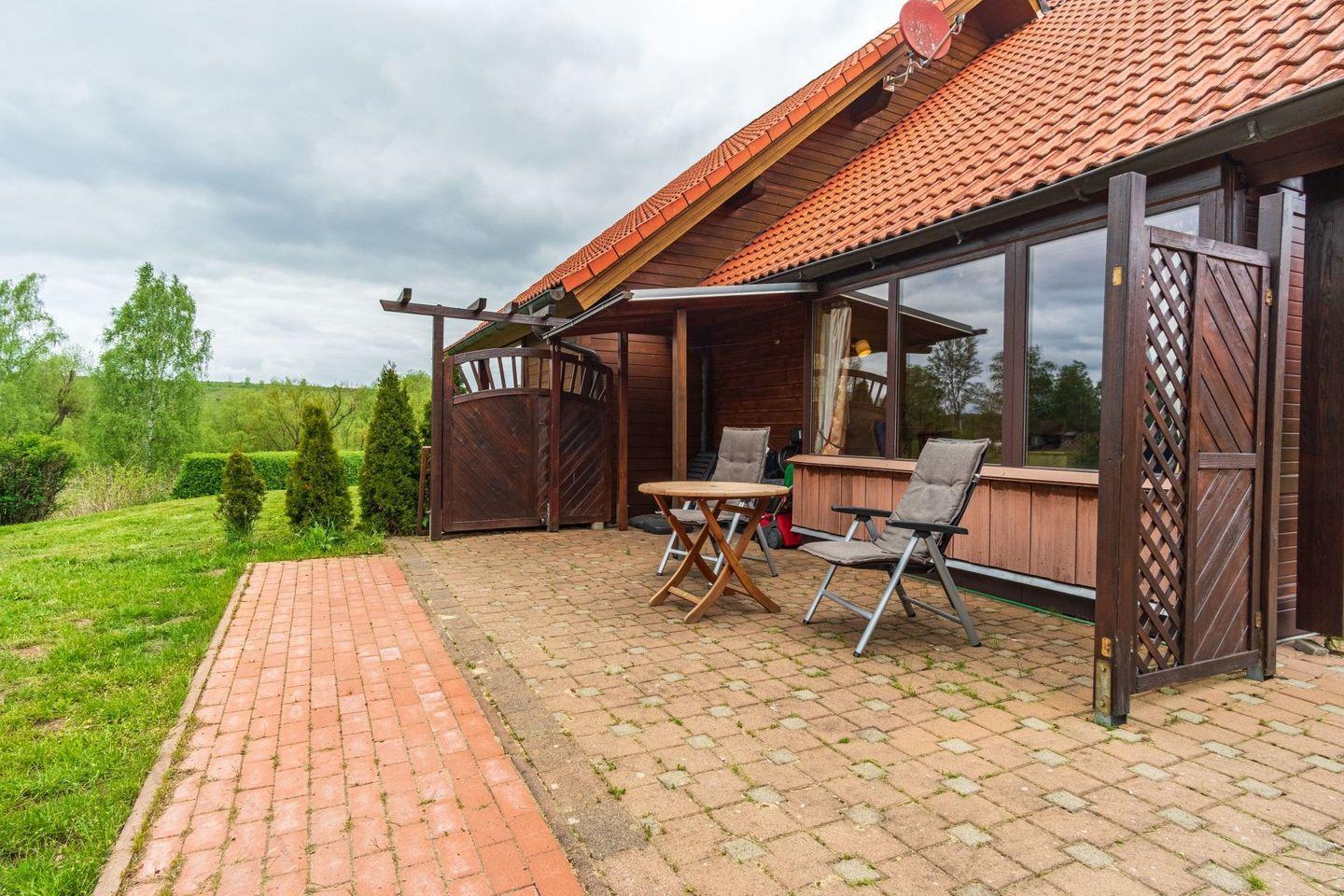 Ein weiteres Highlight dieser Unterkunft ist die überdachte Terrasse, die einen herrlichen Blick in den Garten bietet. Genießen Sie hier Ihr Frühstück im Freien oder lassen Sie den Tag bei einem Glas Wein ausklingen. Der Garten ist ideal für Kinder: Ein Spielplatz in der Anlage sorgt dafür, dass sich die Kleinen austoben können und neue Freunde finden.