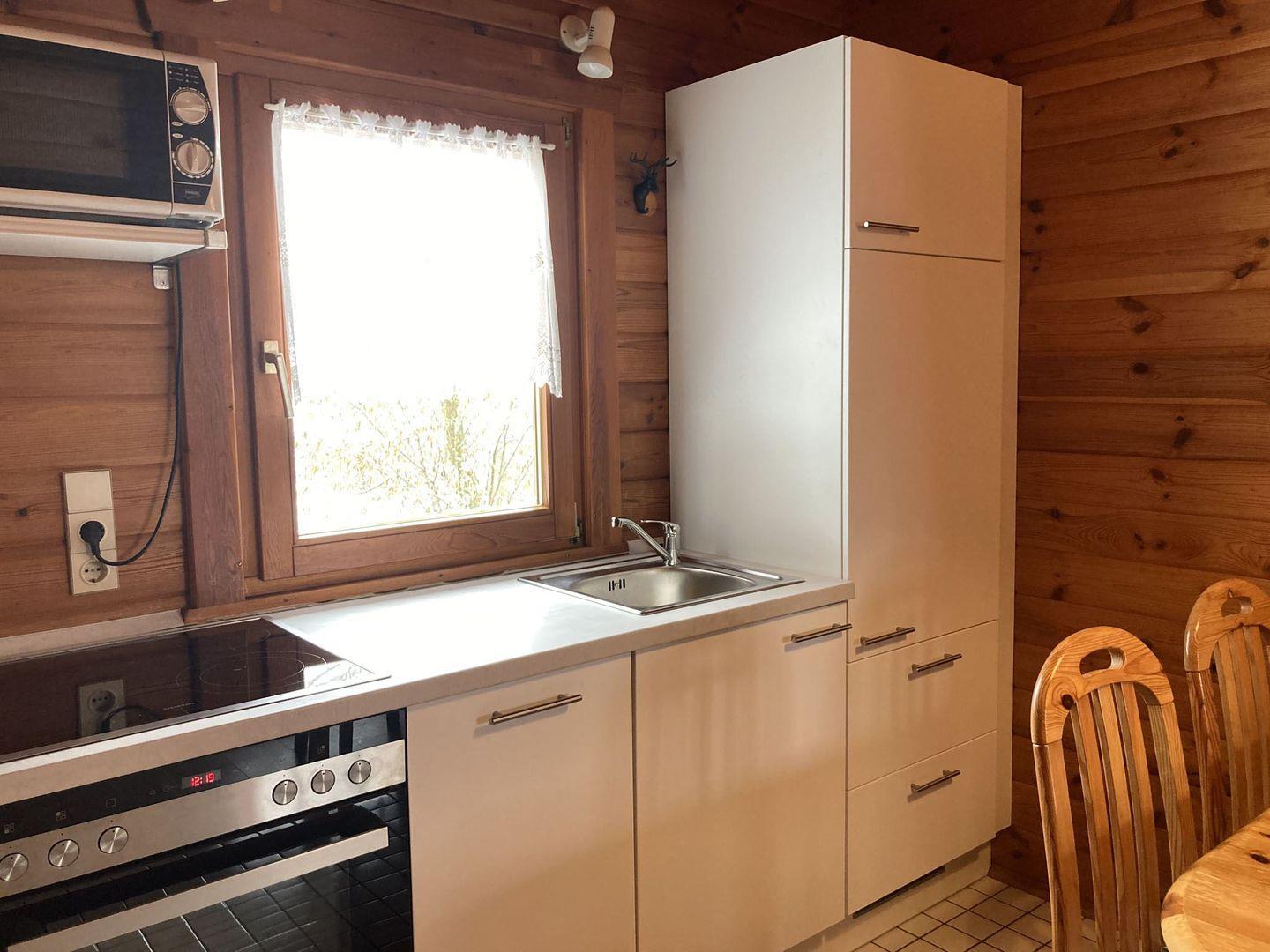 Das Ferienhaus überzeugt durch eine offene und einladende Raumgestaltung mit Dielenboden, der dem Wohnzimmer und den Schlafzimmern Wärme und Gemütlichkeit verleiht. Die helle und freundlich gestaltete Küche ist vollständig ausgestattet – hier finden Sie alles, was Sie für die Zubereitung Ihrer Lieblingsgerichte benötigen, einschließlich Cerankochfeld, Backofen, Kühlschrank mit Gefrierfach, Spülmaschine und grundlegenden Küchenutensilien. Genießen Sie Ihre Mahlzeiten im gemütlichen Essbereich, der direkt mit dem Wohnzimmer verbunden ist.