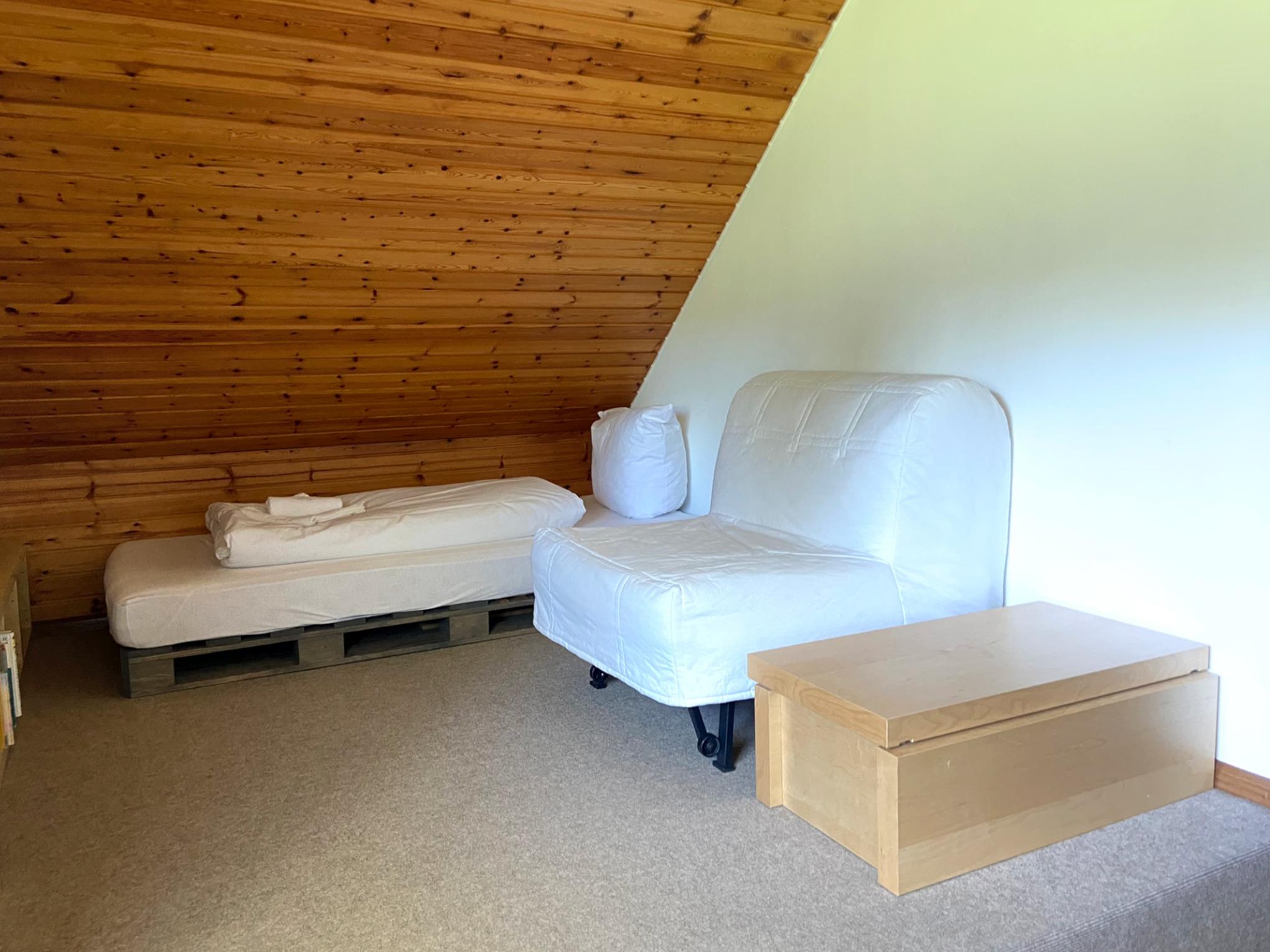 - Schlafzimmer 2 (für 2 Personen): 1 Einzelbett und 1 Schlafsessel, Schrank und Schreibtisch