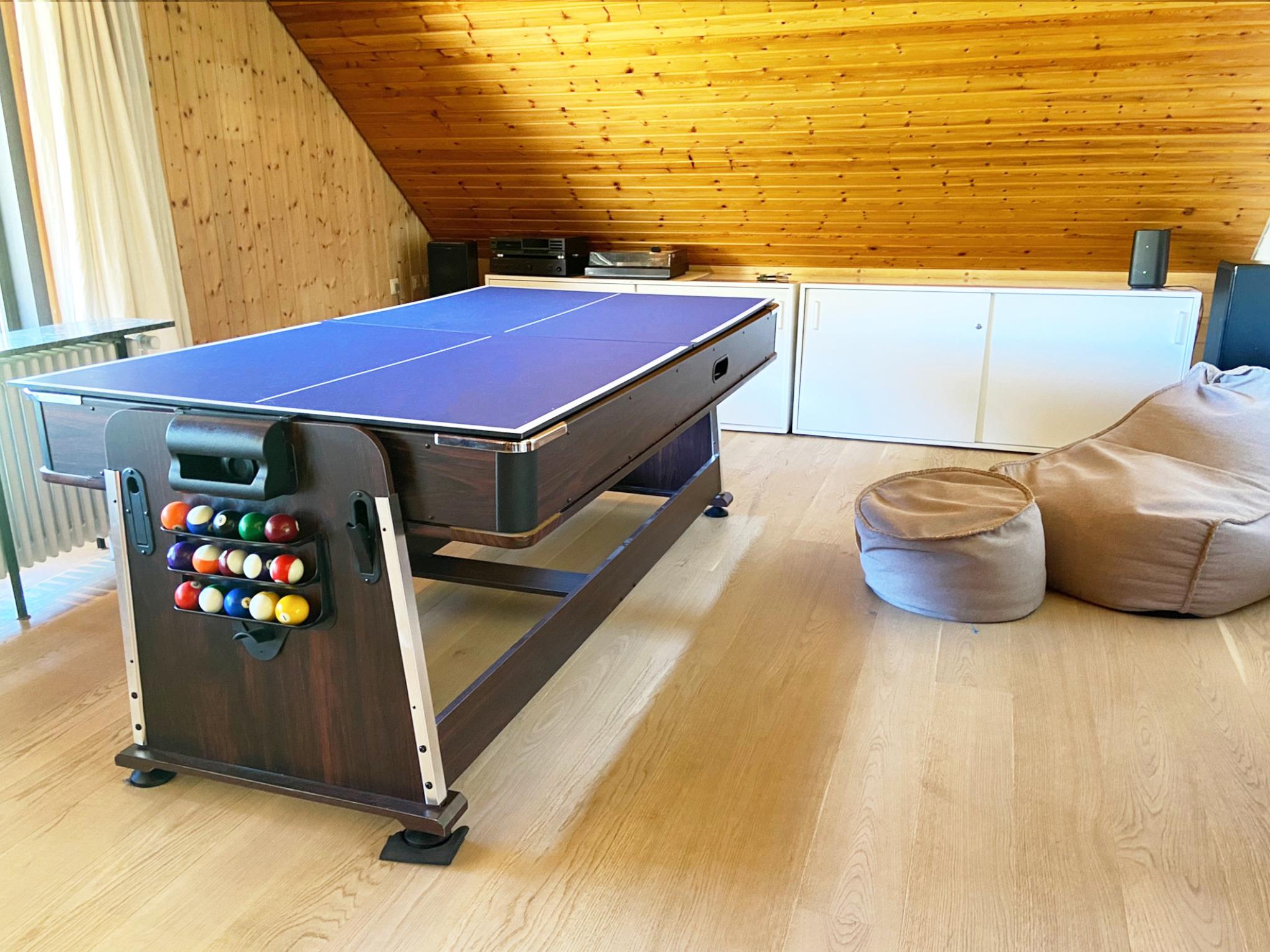 - Schlafzimmer 5 /Jugendzimmer (für 2 Personen): großer Multifunktionstisch mit Billard, Tischtennis und vielem mehr, Kamin, 2 Schlafsofas, Zugang zum Balkon, viele Gesellschaftsspiele
