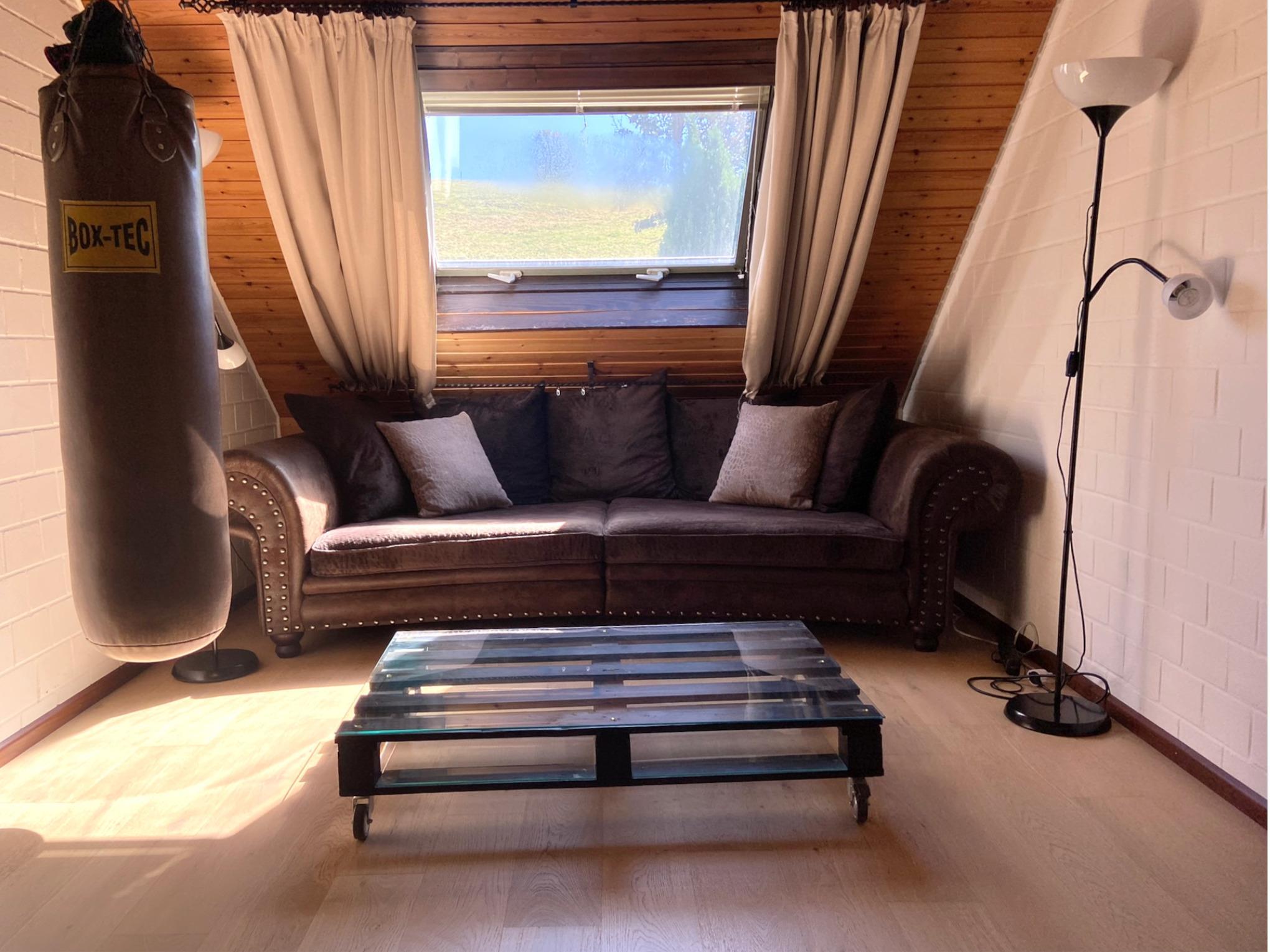- Flur: großes gemütliches Sofa und große Leinwand. Hier besteht die Möglichkeit sich das Kino nach Hause zu holen. Die Technik inkl. Beamer hierfür muss selbst mitgebracht werden.