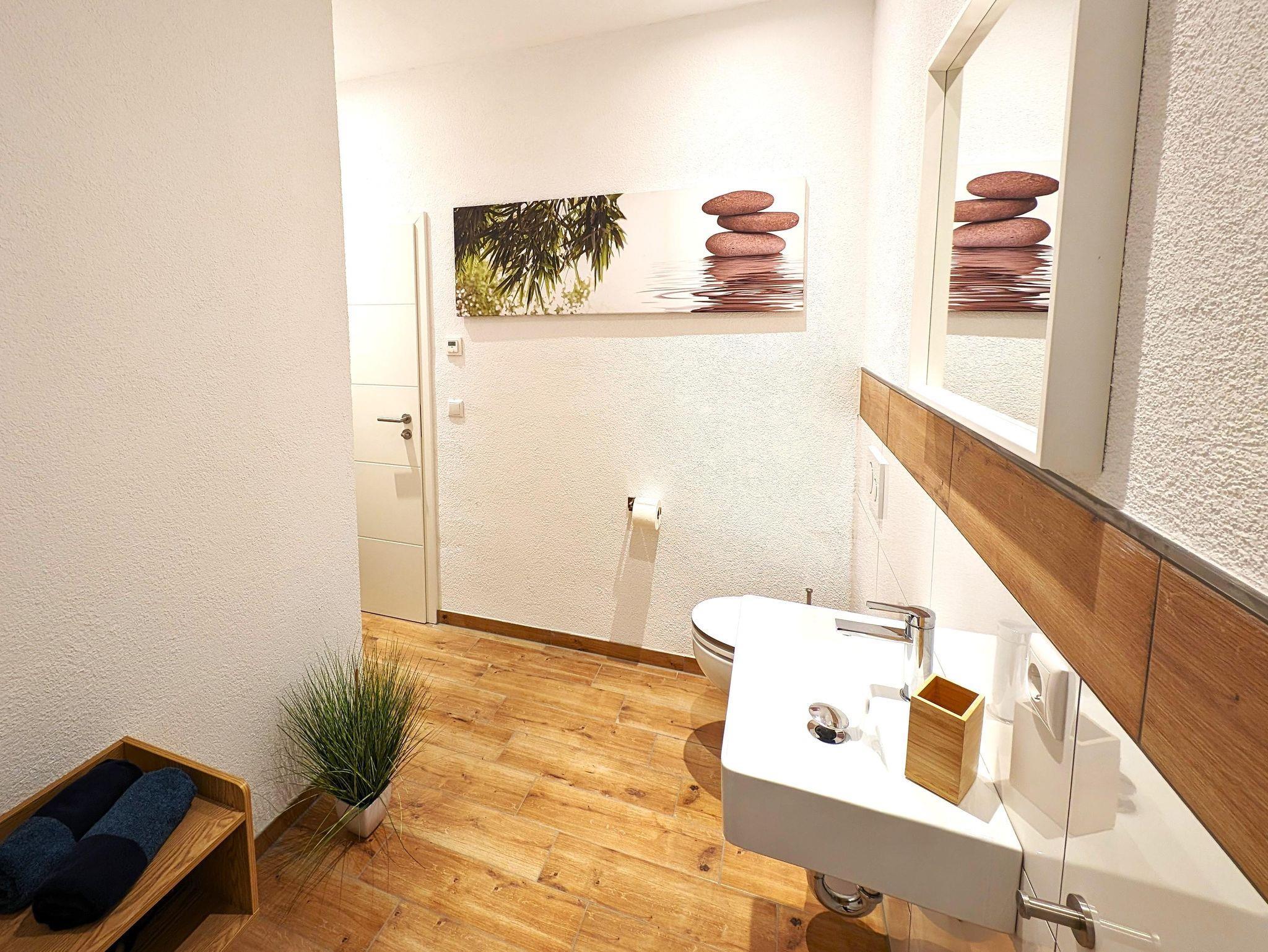 Ganz neu ist unsere mondäne Wohnung Suite Deluxe auf ca. 140 qm auf einer Ebene für bis zu 8 Personen entstanden - ohne Stufen und mit ebenerdiger kleiner Terrasse und an den angrenzenden Wiesen.