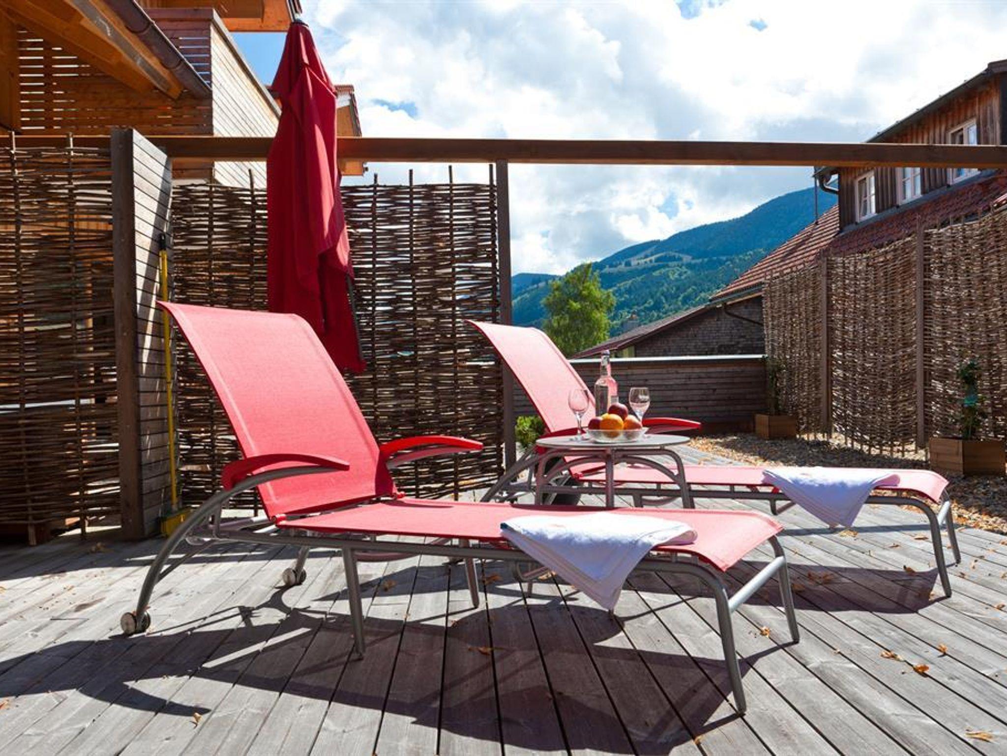 In unseren 5 Luxus-Chalets sowie den 4 Hotelzimmern genießen Sie in exklusivem Ambiente alpenländische Idylle und das nur wenige Autominuten vom Ortszentrum Oberstaufens entfernt. Bequem zu Fuß erreichen Sie die am Haus liegenden Tennisplätze und Langlaufloipen sowie das Skigebiet Hündle-Thalkirchdorf. Neben vielfältigen Sportaktivitäten in der Natur und dem 4 km entfernten Alpsee, steht Ihnen unsere finnischen Sauna zur Verfügung. Kulinarisch werden Sie in unserem gemütlichen Dorfhaus-Restaurant oder direkt in den Chalets verwöhnt - angefangen vom reichhaltigen Frühstücksbuffet, unseren erlesenen Speisen bis hin zu einheimischen Spezialitäten in unserem hauseigenen Dorfladen. Außerdem können Sie bei uns mehr über die Käseherstellung erfahren und Ihren eigenen Käse in unserer Käseschule herstellen. Ideal sind unsere Chalets für Freundschftsausflüge oder Familienaufenthalte. Unser Highlight - die kostenlose Nutzung von Oberstaufen PLUS GOLF: Das heißt einzigartiges Golfvergnügen, grenzenloser Badespaß im Erlebnisbad Aquaria, freie Fahrten mit den Bergbahnen, Skipässe und vieles mehr!