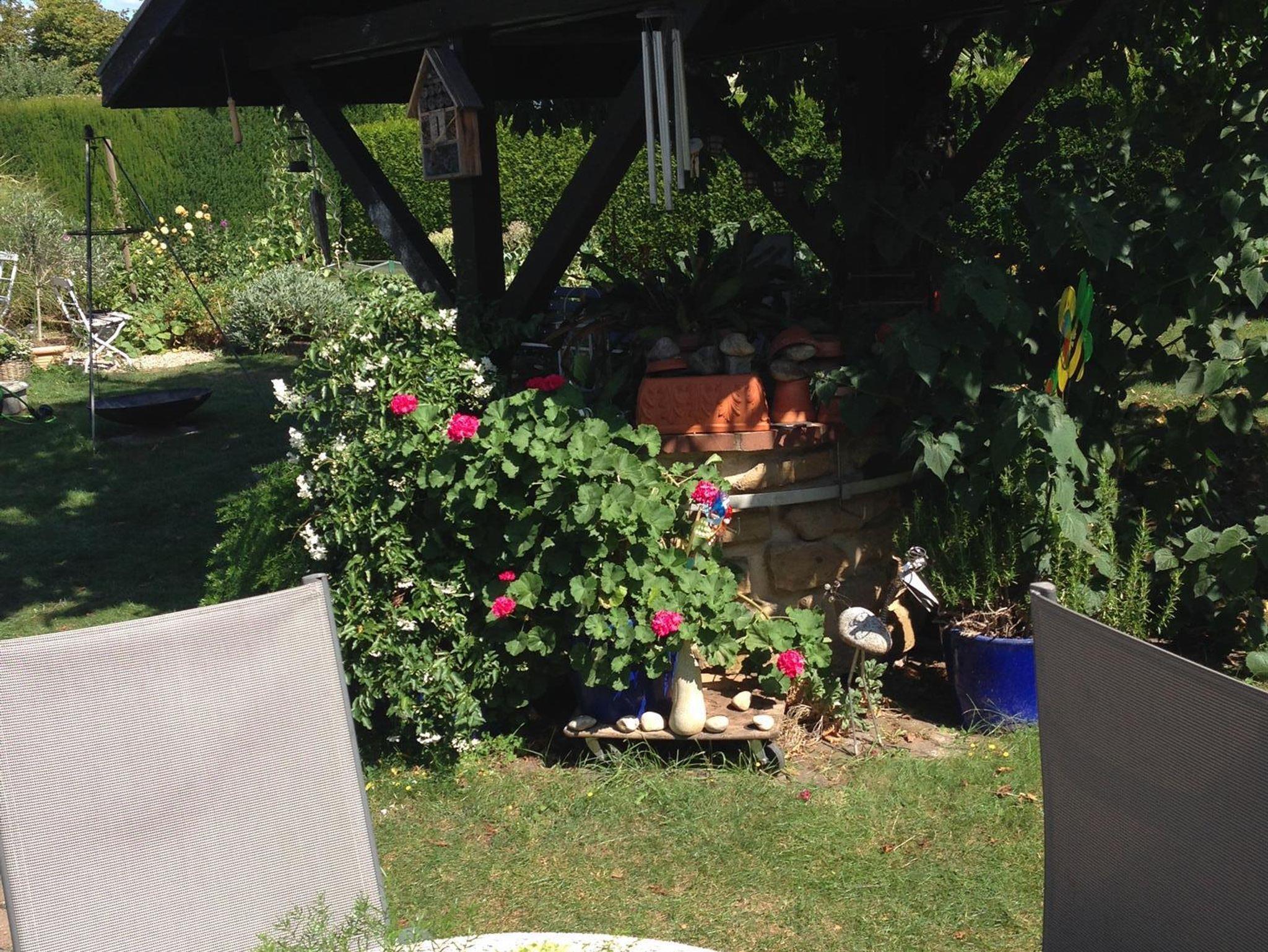 Ein besonderes Highlight ist die kleine Sitzecke vor der Haustür neben dem Garten. Diese ist ideal nach Süden ausgerichtet und bietet Ihnen die Möglichkeit, zu jeder Jahreszeit mit der Sonne zu frühstücken. Im Sommer können Sie die lauen Abende angenehm im Schatten verbringen.