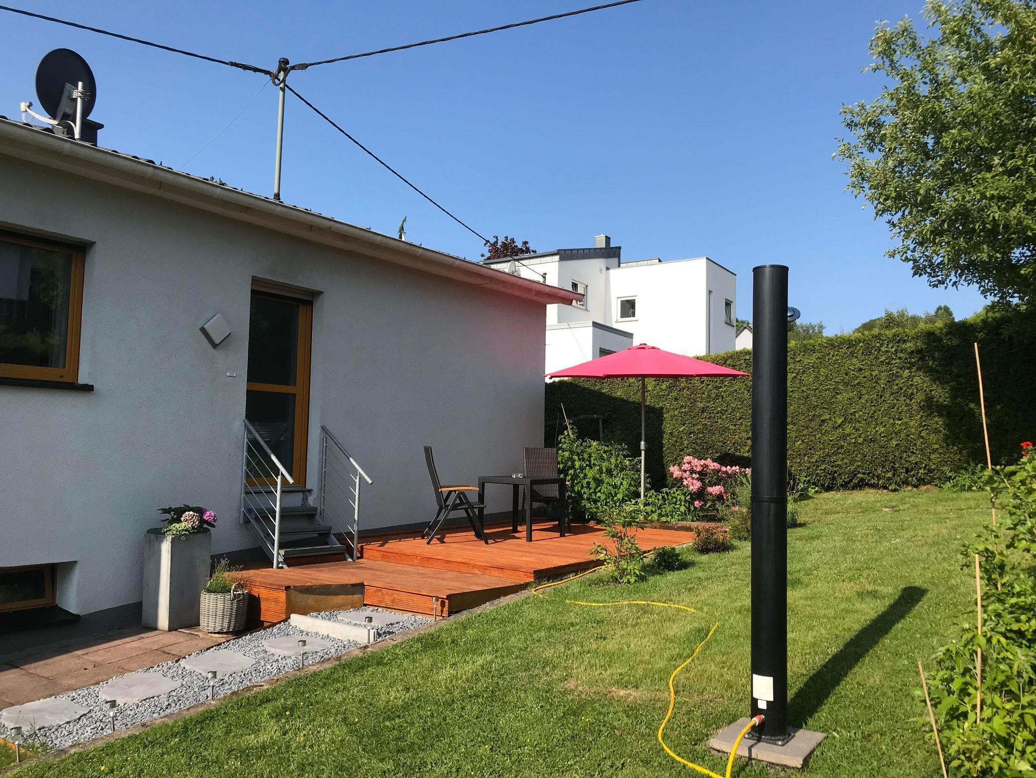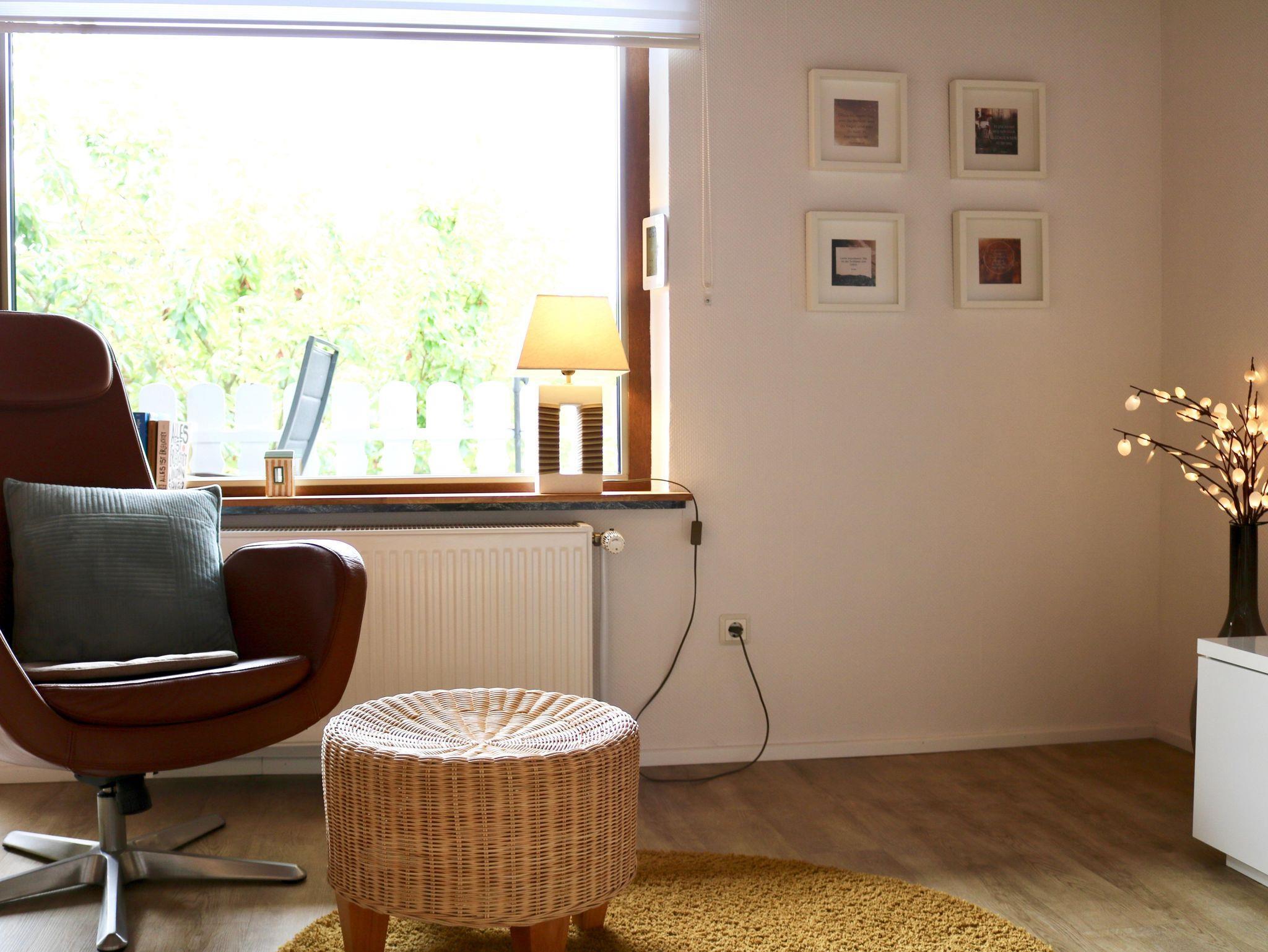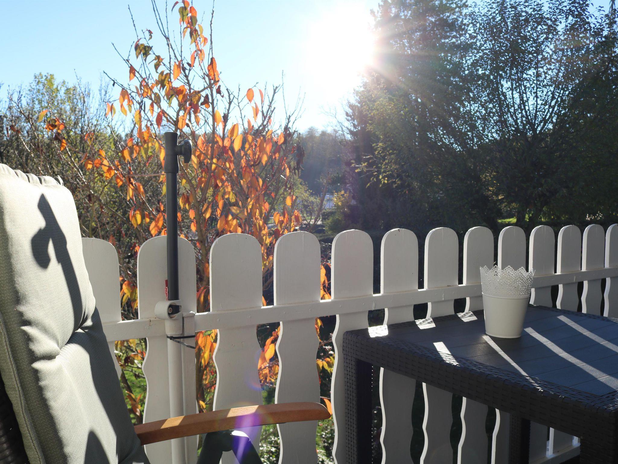 Unsere helle, gemütliche Wohnung hat einen separaten Eingang, einen überdachten Sonnenbalkon und eine Terrasse im Garten und bietet auf ca. 90 m² ausreichend Platz zum Schlafen, Kochen und Beisammensein, zum Durchatmen und auf neue Gedanken kommen. Einfach mal Zeit haben für sich, zu Zweit oder als Familie.