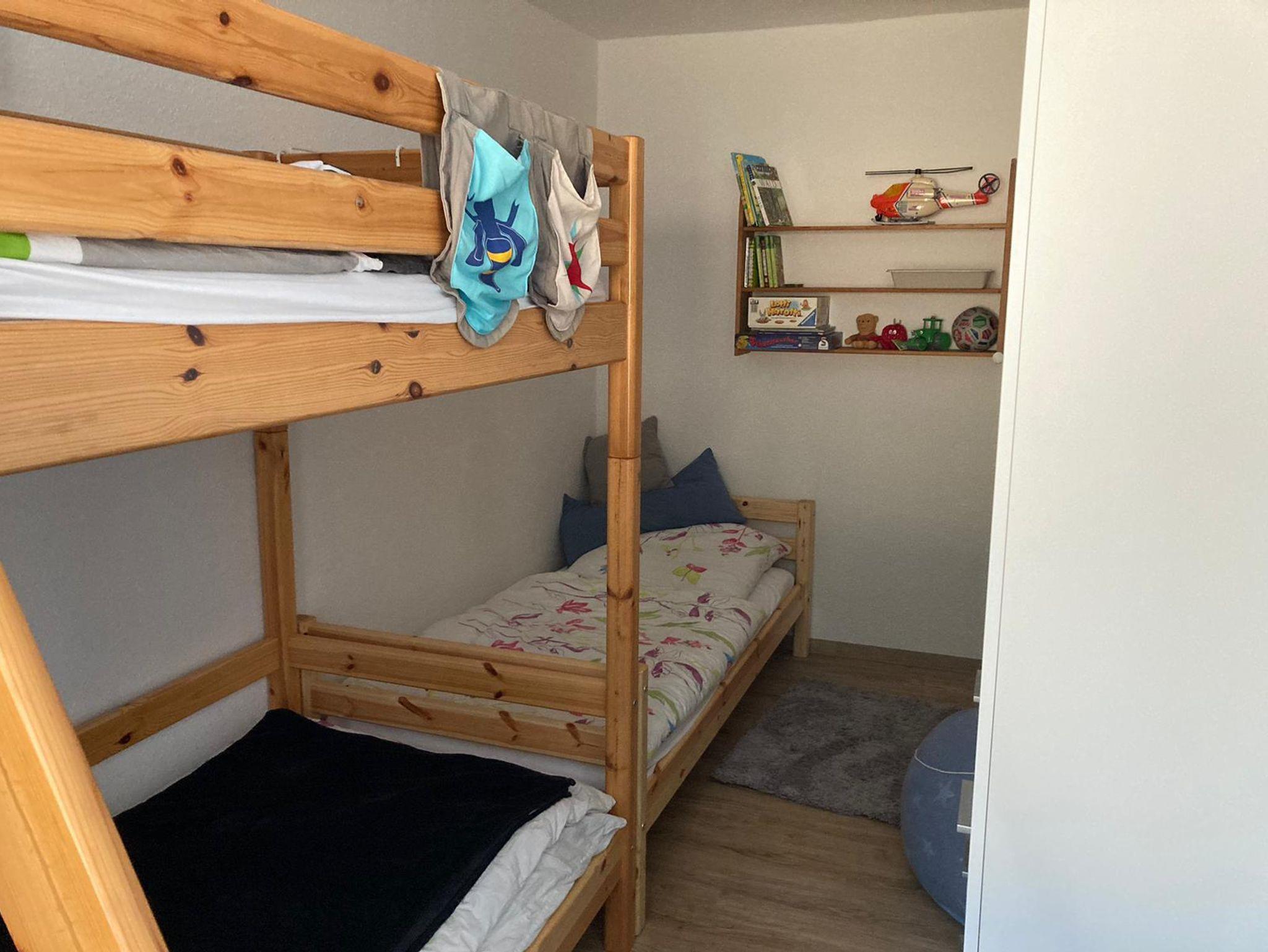 Im Einzelnen erwarten Sie: Ein Wohnzimmer mit großer sehr bequemer Relaxcouch, Esstisch mit zwei Bänken, zwei Schränken, Fernseher (Empfang nur über Mediatheken), Spielkonsole WiiU mit Gamepad und zwei Controllern sowie verschiedenen Spielen. Schlafzimmer mit elektrisch höhenverstellbarem Doppelboxspringbett, zwei Echtholznachtschränken, Echtholzkleiderschrank, Schaukelstuhl und Sitzsack. Kinderzimmer mit einem Flexa-Etagenbett und einem Flexa-Einzelbett, Kommode und Sitzsack. Auch etwas Spielzeug ist vorhanden. Komplett eingerichtete nolte-Einbauküche mit Kühl-/Gefrierkombination, Geschirrspüler, Neff-Einbauherd mit Cerankochfeld (vier Kochstellen), Backofen mit Umluft und Grill, Mikrowelle, Kaffeemaschine, Toaster, Wasserkocher, Sandwichmaker, Stabmixer, ausreichend Geschirr. Separates Badezimmer mit Badewanne, Waschbecken, Toilette, Spiegelschrank und Fön. Im Keller des Hauses können Fahrräder oder Skisachen abgestellt werden.