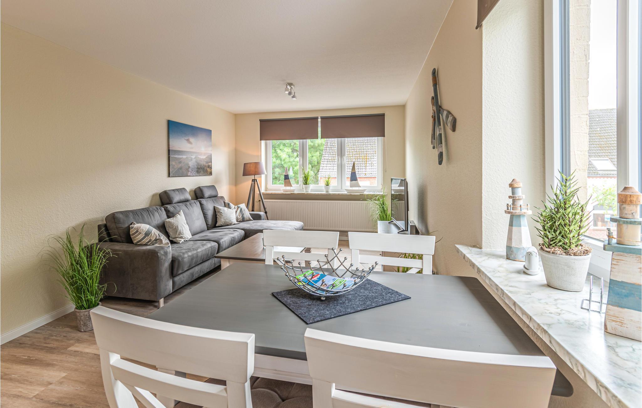 Nur 1.500 m vom Deich entfernt können Sie sich hier die frische Nordseeluft um die Nase wehen lassen. Fühlen Sie sich wie zuhause in dem großen Wohn- / Essraum oder entspannen Sie auf der großen, gemeinsam genutzten Terrasse. Die Wohnung bietet viel Platz für einen Nordseeurlaub für 2 Personen. Im Außenbereich sind genügend Parkflächen für die Gäste vorhanden.