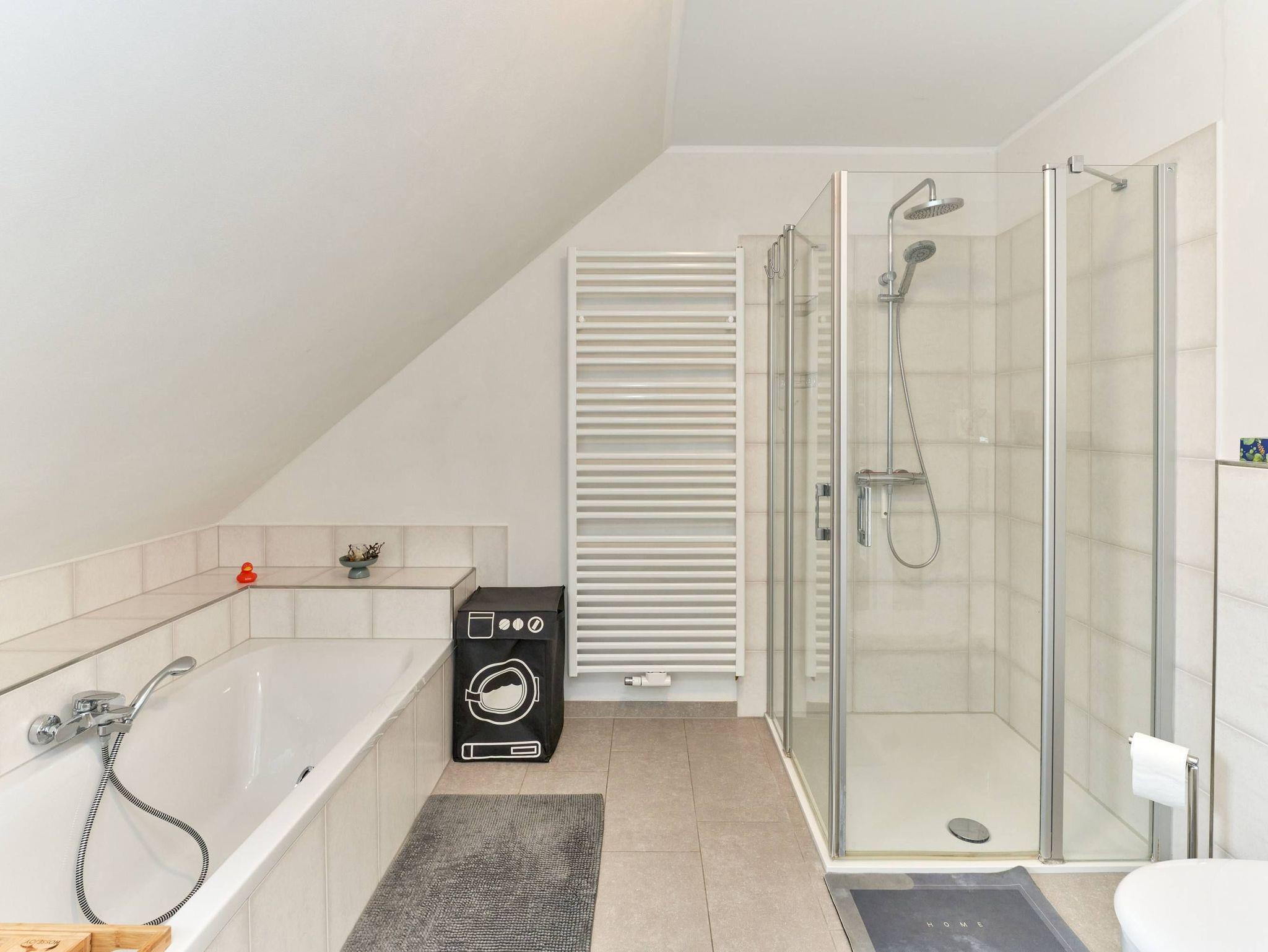 Im Dachgeschoss befinden sich zwei gemütliche Schlafzimmer, die Ihnen eine erholsame Nachtruhe garantieren. Zudem erwartet Sie ein großes Badezimmer mit separater Badewanne und Dusche, Toilette und Waschbecken ? ideal für entspannende Wellnessmomente nach einem aktiven Tag an der Nordsee. Ein Ankleidezimmer bietet Ihnen zusätzlichen Stauraum für Ihre Kleidung und persönlichen Dinge.