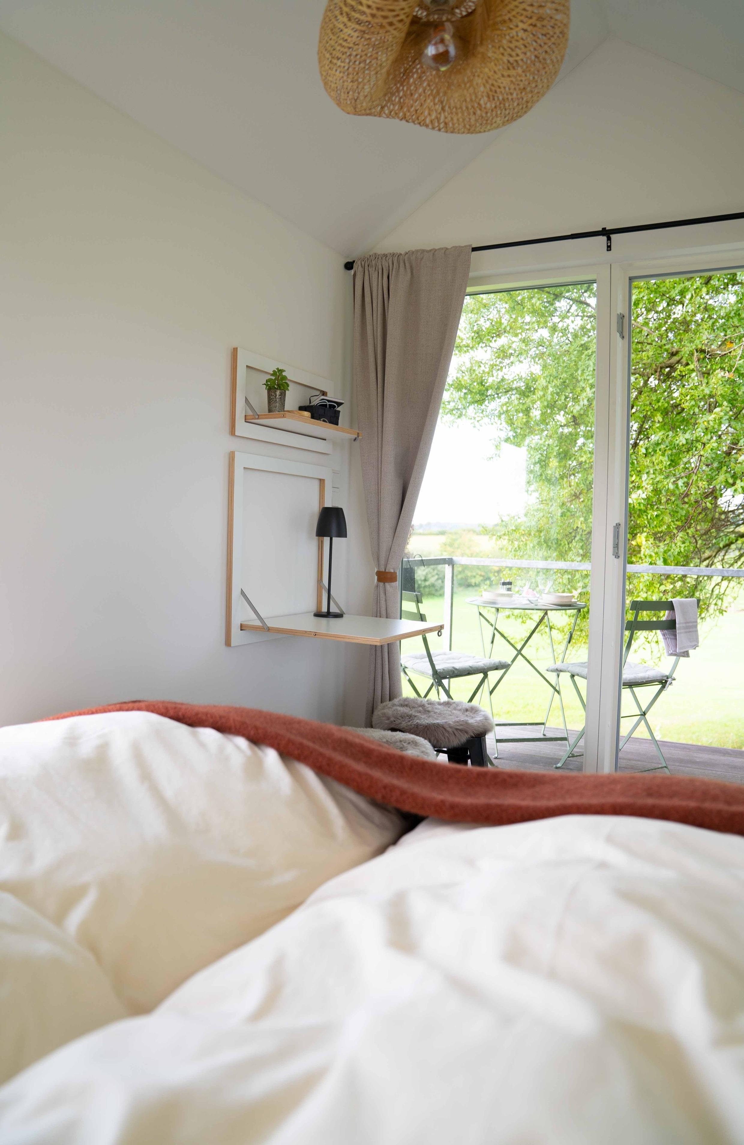 Das Studio Mini steht auf einem kleinen Hügel mit einem Fernblick in die Landschaft.