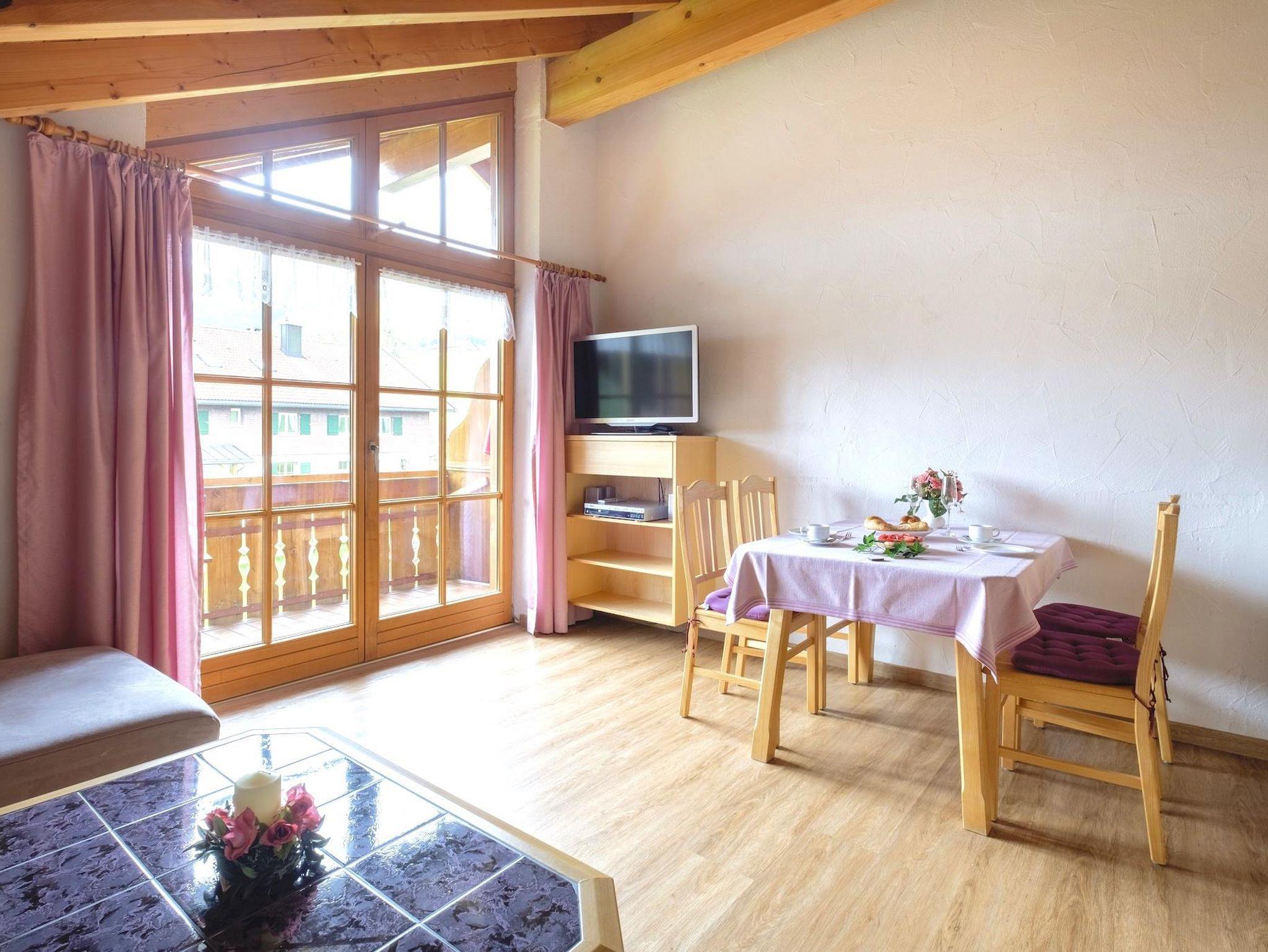 geräumiges, separates Schlafzimmer (Zustellbett möglich), Wohnraum mit ausziehbarer Couchgarnitur, Küchenecke (Spülmaschine, Backofen)Esstisch, Dusche/WC, SAT-TV, Radio, kostenloses WLAN, Südbalkon mit herrlichem Blick auf die Allgäuer Alpen.
