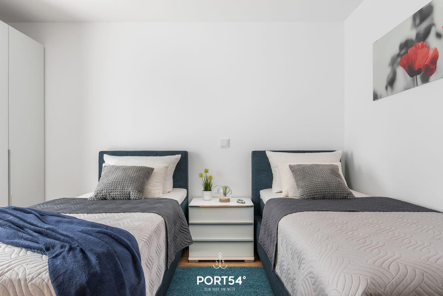 Die Ferienwohnung "Onkel Olli" befindet sich im neuerbauten OstseeResort Olpenitz. Die luxuriöse und loftähnliche gestaltete Ferienwohnung "Onkel Olli" hat auf 120m² für bis zu 6 Personen und lässt Sie einen wahren Traumurlaub an der Ostsee verbringen. Das offene Wohnkonzept spiegelt sich besonders im Wohn-/Essbereich mit einer offenen Küche wider. Hier wurden stilvolle Farben wie Blau-Grau, Flieder oder Altrosa genutzt, um die farbenreichen Sonnenuntergänge am Ostseehimmel sowie den maritimen Einfluss in das Wohnen zu bringen. Der Kamin lädt Sie an kalten Tagen ein, es sich gemeinsam gemütlich zu machen und den atemberaubenden Wasserblick zu bestaunen. Vom Wohnzimmer aus haben Sie auch Zugang zu der halb überdachten, großen Terrasse mit einem tollen Ausblick. Hier können Sie die frische Ostseeluft oder die wunderschönen Sonnenuntergänge im Strandkorb erleben. Die offen gehaltene Küche ist hochwertig und voll ausgestattet. Das Appartment verfügt über insgesamt drei Schlafzimmer. Das erste Zimmer ist ausgestattet mit einem Boxspring-Doppelbett (160x200cm) des Modells Milano Exklusiv von der Firma Ruf. Außerdem gibt es einen Flachbild-TV und Zugang zu einer weiteren kleineren Terrasse, auf der Sie Ihren Morgenkaffee genießen können. Das zweite Zimmer hat ebenfalls ein Boxspring-Doppelbett in den Maßen 180x200cm. Im dritten Zimmer befinden sich 2 Einzelboxspringbetten des Modells Casa Luna 5-Sterne, die auch zu einem Doppelbett zusammenschiebbar sind. Zudem steht in diesem Schlafzimmer ein Schreibtisch. Das Farbenspiel aus Blau-Grau, Flieder- und Auberginetönen setzt sich auch hier fort. Es gibt zudem 2 moderne und helle Badezimmer. Das im 1. OG liegende Bad hat als Highlight eine verglaste Infrarotsauna für Ihre Entspannung und eine Dusche. Das Badezimmer im 2. OG verfügt über eine Badewanne. Vierbeiner sind in "Onkel Olli" auf Anfrage und gegen Gebühr erlaubt. Das Apartment besitzt einen PKW-Stellplatz.