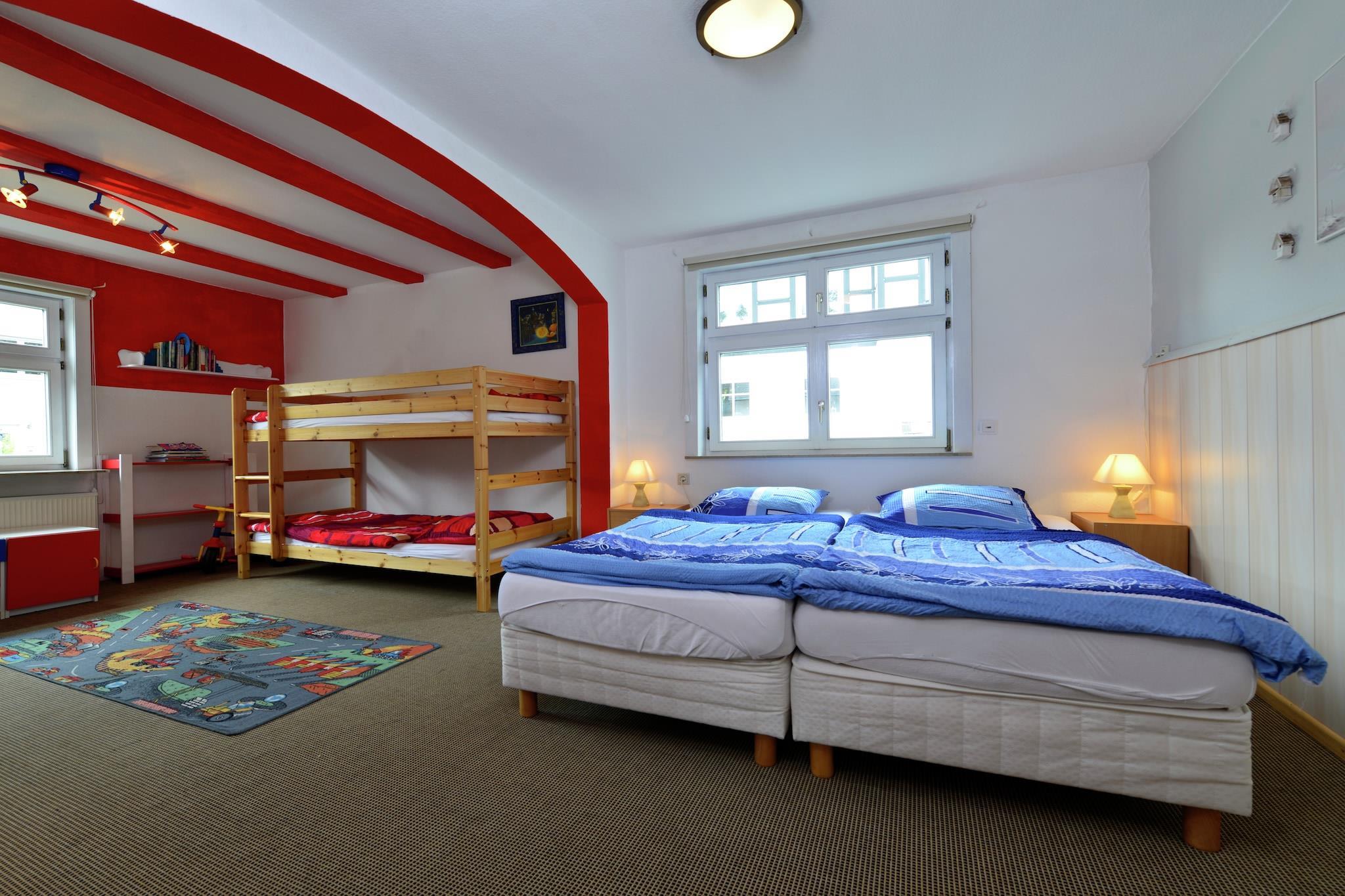 Parterre: (Eingang, Eingangshalle, Wohnzimmer(TV(Flatscreen, Satellit), Balkon), Esszimmer(Esstisch), Küche(Wasserkocher, Kochherd(4 Kochplatten), Dunstabzugshaube, Kaffeemaschine(Filter), Backofen, Mikrowelle, Spülmaschine, Kühl-/Gefrierkombination), Schlafzimmer(Doppelbett, Waschbecken), Schlafzimmer(Doppelbett, Etagenbett, Kinderbett), Badezimmer(Dusche, Waschbecken, Toilette), Abstellraum) In der 1. Etage: (Schlafzimmer(Doppelbett), Schlafzimmer(Doppelbett, Kinderbett), Schlafzimmer(Einzelbett), Schlafzimmer(Einzelbett, Etagenbett), Badezimmer(Badewanne mit Dusche, Waschbecken, Toilette), Billard) Souterrain: (Keller, Tischtennisplatte) Garage, Garten(alleinige Nutzung), Gartenmöbel, Grill, Hochstuhl
