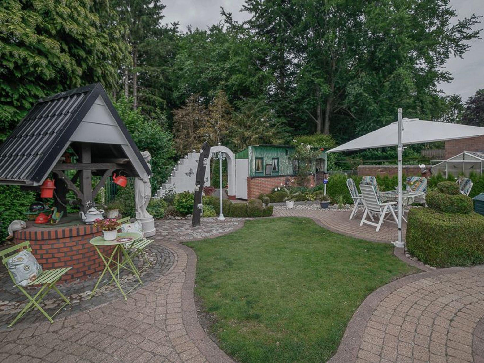 (1 x Boxspringbett, 1 Doppelzimmer, 1 Zweibettzimmer, Wohnzimmer, Wohnküche, Dusche/WC, 1 Kinderbett, Mikrowelle, Waschmaschine, Terrasse, parkähnlicher Garten mit Holz-Pavillon, Gartenmöbel vorhanden, Grillmöglichkeit, kinderfreundlich, Fahrräder vorhanden (pro Tag 5,00 Euro), Parkplatz befindet sich am Hause.
