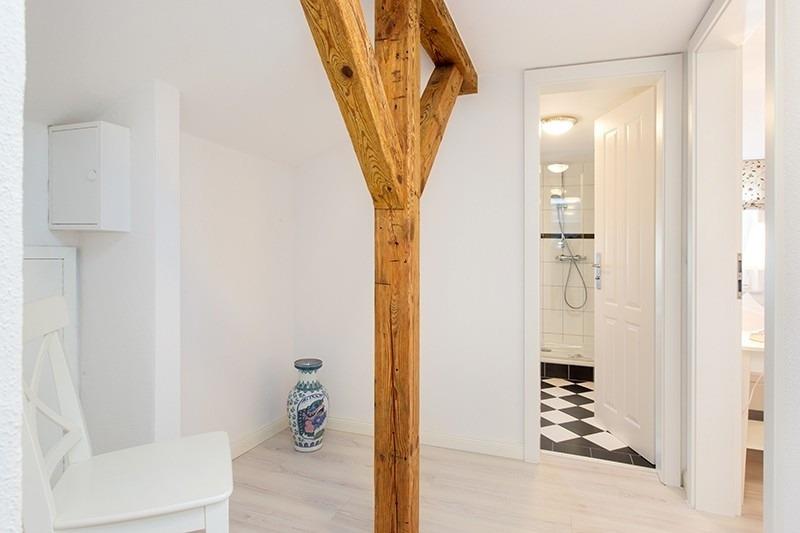 2 1/2-Zimmer-Ferienwohnung, ca. 50 qm, mit Dachschrägen, max. Höhe 2,03m, 2. OG mit Balkon nach Osten, begehbar vom Wohnzimmer