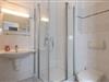 Das Badezimmer ist mit einer Eckdusche eingerichtet.