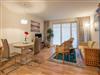 Wohnraum, separates Schlafzimmer mit modernen Boxspringbetten, Terrasse, eingerichtete Küchenzeile mit Geschirrspüler, integrierte Mikrowelle, E-Herd mit Ceranfeld, Backofen, Kühlschrank mit Gefrierfach, Krups-Nespressomaschine, Dusche/ WC, LCD-Flachbildfernseher mit neuartigem gebogenem Bildschirm, Blu-Ray-Player, Stereo-Anlage, Nichtraucher, Haustiere nicht erlaubt, Laminatfußboden im gesamten Bereich,