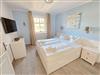 Diese komfortable Ferienwohnung bietet alles, was das Herz begehrt, und lädt Sie zu einem Frühstück auf Ihrem großzügigen Balkon ein. Der Wohnraum verbindet ein gemütliches Wohnzimmer mit dem Essbereich und einer voll ausgestatteten Küche. Vorhanden sind ein extra großer Kühlschrank mit 3-Sterne Eisfach, ein Geschirrspüler, eine Mikrowelle, ein Backofen mit Ceranfeld sowie ein Wasserkocher, eine Kaffeemaschine und ein Toaster. Das Wohnzimmer punktet neben einem Schlafsofa mit einem 55 Zoll Flachbildschirm und einer Stereo-Anlage. Das Schlafzimmer liegt separat und verfügt neben dem bequemen Doppelbett über einen 42 Zoll TV, sowie über einen direkten Zugang zu einem separaten Ankleidezimmer. Das Badezimmer überzeugt mit einer geräumigen Glas-Dusche, einem Waschbecken, einem WC und einem großen Spiegel. An allen Fenstern sind Plissees angebracht. Die Ferienwohnung liegt im Haupthaus und bietet Ihnen die komfortable Nähe zur Rezeption, zum Bäcker und zum Wellnessbereich. In der Zeit von Mai bis September ist ein eigener Strandkorb am Strand kostenfrei nutzbar.