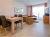 In dieser gut geschnittenen Ferienwohnung genießen Sie Ihr Frühstück auf Ihrem Balkon. Im großen offenen Wohnraum sind neben der gemütlichen Couchgarnitur mit LED-TV und Stereo-Anlage der Essbereich und die Küche. Diese ist voll eingerichtet u.a. mit Geschirrspüler, 4er Cerankochfeld, Mikrowelle mit Grill, Toaster, Wasserkocher und Kaffeemaschine. Das Schlafzimmer hat ein großes Doppelbett. Durch das Ankleidezimmer gehen Sie in das schön geflieste Badezimmer, wo Sie eine geräumige Dusche, ein WC und ein Waschbecken mit großem Spiegel vorfinden. Gegen Aufpreis buchbar ist der ebenerdige Seitenstellplatz in der Tiefgarage.