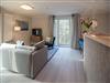 Dünenresidenz Neues Prora, Wohnzimmer mit LCD-TV, sonnige Landseite, eingerichtete Küchenzeile mit Geschirrspüler und Backofen, Schlafzimmer mit Doppelbett und Fernseher, kostenfreier WLAN-Anschluss (32 Mbit/s) Bad mit Dusche, Haustiere erlaubt, Nichtraucher,ei gener Strandkorb (Mai - September) kostenfrei nutzbar