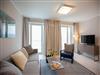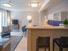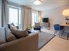 Dünenresidenz Neues Prora, Wohnzimmer mit LCD-TV, Balkon mit Meerblick, eingerichtete Küchenzeile mit Geschirrspüler und Backofen, Schlafzimmer mit Doppelbett und Fernseher, Bad mit Badewanne, kostenfreier WLAN-Anschluss, Haustiere erlaubt, Nichtraucher, eigener Strandkorb (Mai - September) kostenfrei nutzbar