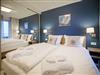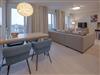 Dünenresidenz Neues Prora, Wohnzimmer mit LCD-TV, Balkon mit Meerblick, Dachterrasse mit Rundumsicht, eingerichtete Küchenzeile mit Geschirrspüler und Backofen, Schlafzimmer mit Doppelbett und Fernseher, Bad mit Dusche, kostenfreier WLAN-Anschluss, Haustiere erlaubt, Nichtraucher