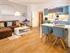 In dieser stylischen Ferienwohnung genießen Sie Ihr Frühstück auf dem privaten Balkon mit Seeblick. Der Wohnraum verbindet das Wohnzimmer mit DVD-Player mit Radio, CD, MP3, Play Station 2 und Kabel-TV (LCD), mit dem Essbereich und der Küche. Diese ist voll eingerichtet und verfügt über einen 4-Platten-Herd, einen Backofen, einen Geschirrspüler, eine Mikrowelle, einen Toaster, einen Wasserkocher und eine Kaffeemaschine. Das Schlafzimmer verfügt über ein Doppelbett und einen zusätzlichen Fernseher. Im Badezimmer erwarten Sie eine geräumige Dusche, ein Waschbecken, ein WC und ein großer Spiegel. Zusätzlich verfügt diese Wohnung über eine eigene Infrarot-Sauna.