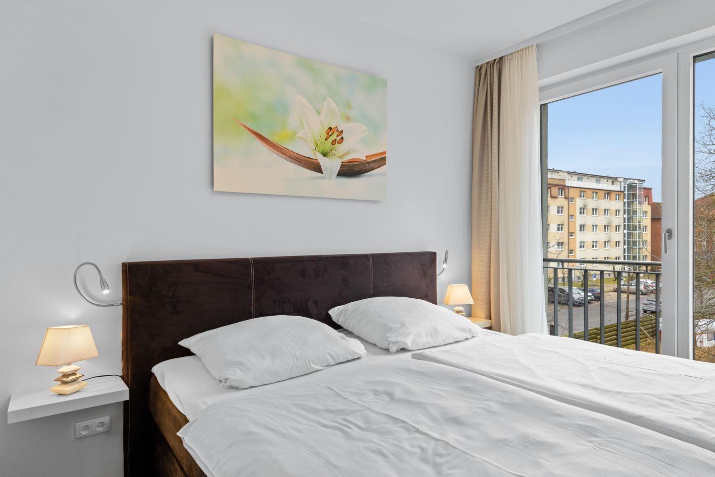 Die exklusive Ferienwohnung befindet sich im 2. Obergeschoss auf der Westseite der Anlage, die 2014 entstand. In nur 150 Metern erreicht ihr den Ostseestrand und die Binzer Seebrücke.