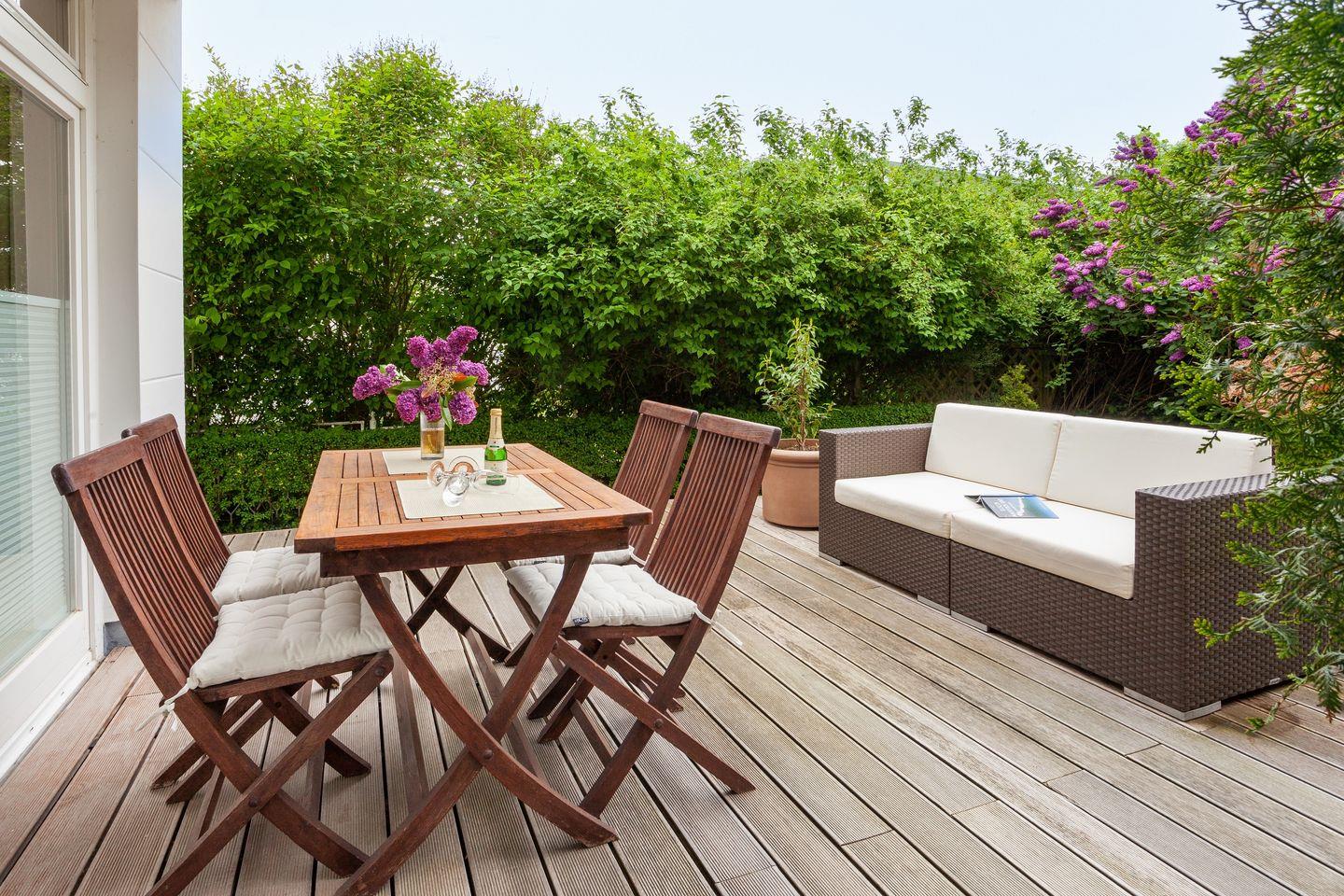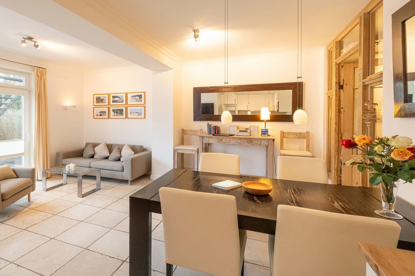 Luxuriöse Ferienwohnung in ruhiger Lage nahe Strand mit zwei Terrassen und eigenem Strandkorb inklusive.