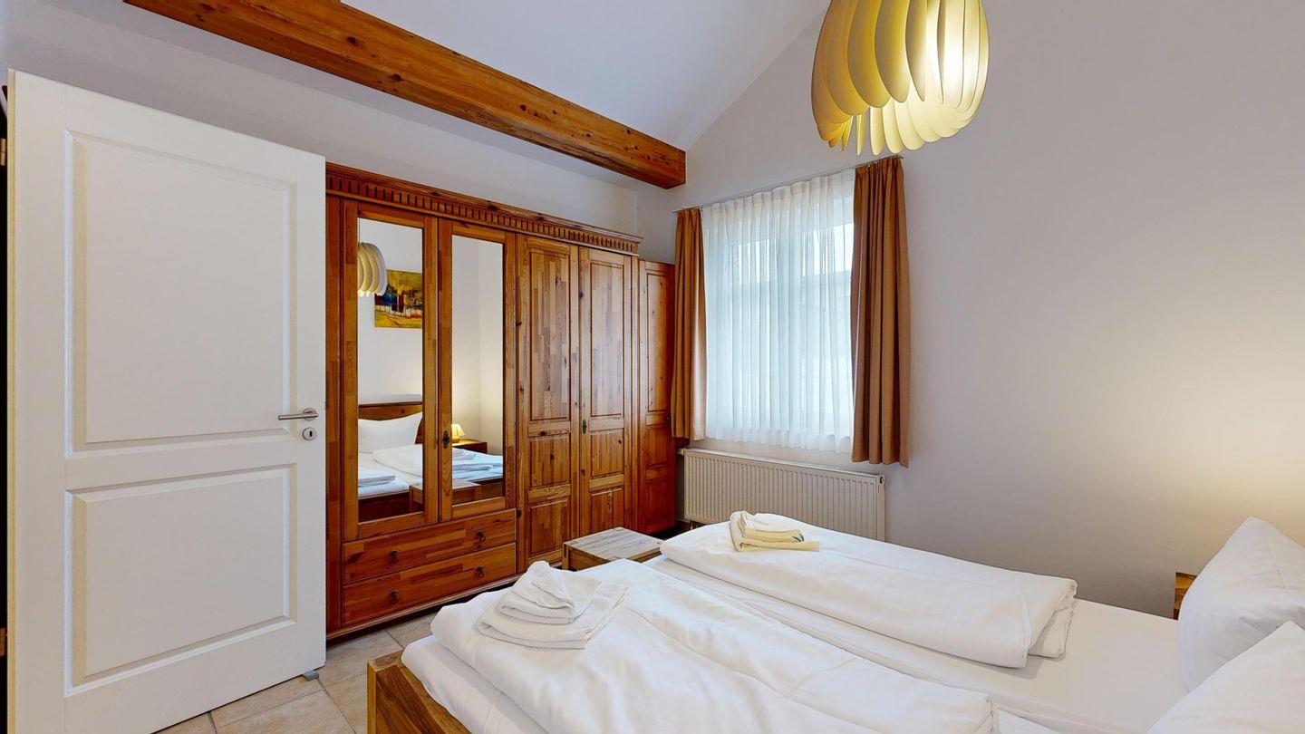 * 1 Schlafzimmer mit 2 Einzelbetten, kl. TV, Schrank