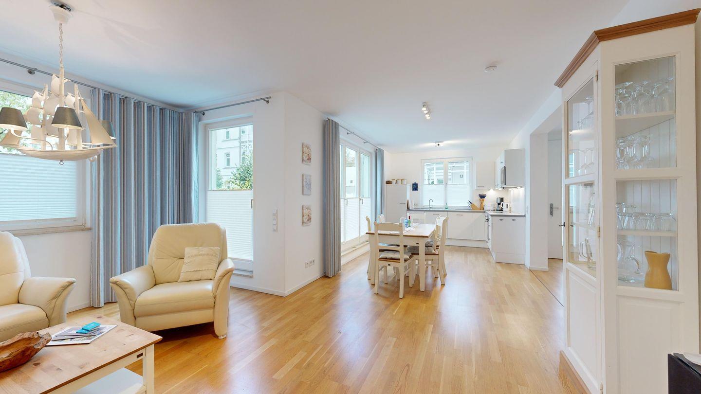 Diese stilvolle Ferienwohnung im Erdgeschoss bietet direkten Zugang zu einem großzügigen Garten mit Terrasse und eingeschränktem Meerblick – ideal für entspannte Stunden im Freien. Die moderne Ausstattung und die Nähe zum Strand machen diese Unterkunft zu einem perfekten Rückzugsort für Ihren Urlaub in Binz.