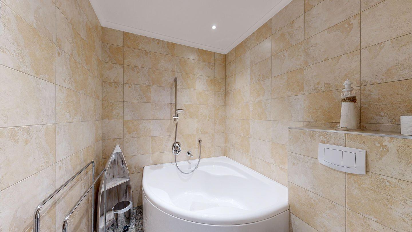 * Großes Badezimmer mit Wanne, Dusche, Föhn und WC