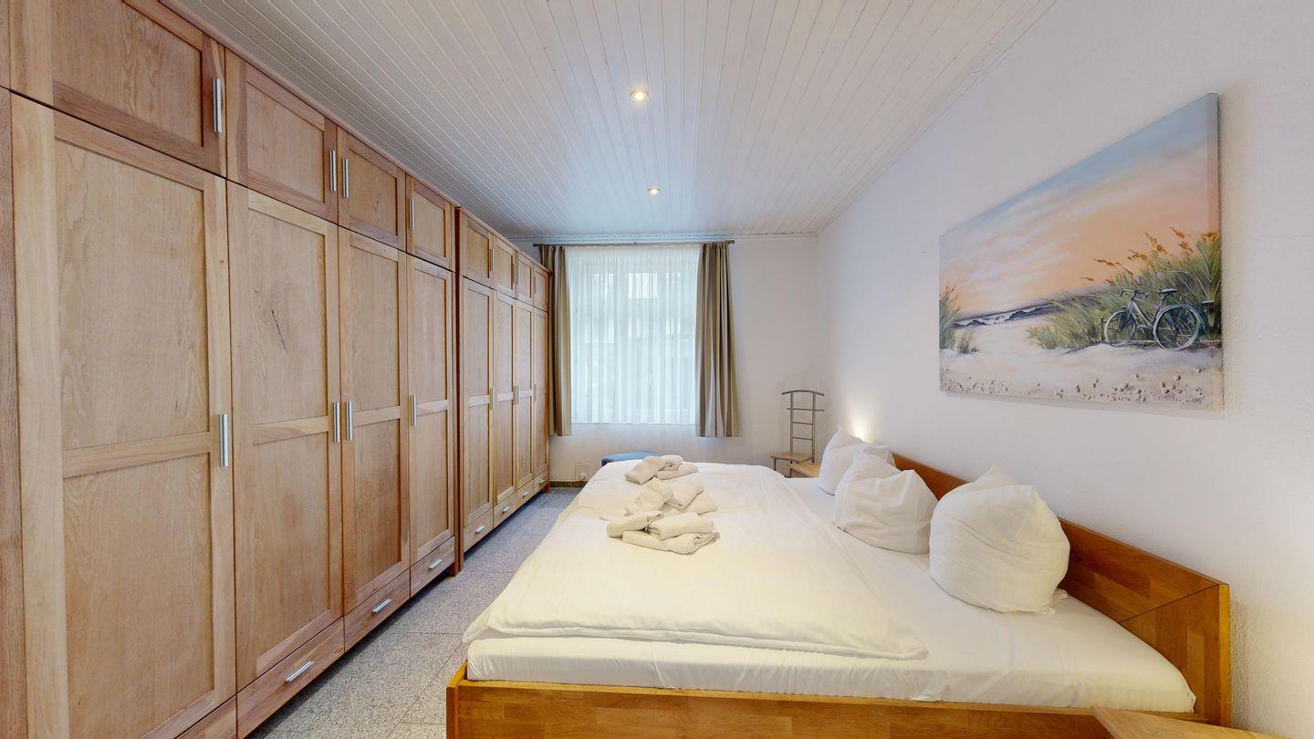 * 1 Schlafzimmer mit einem Doppelbett (Bett 200 x 90 cm), großer Schrank, Durchgangszimmer
