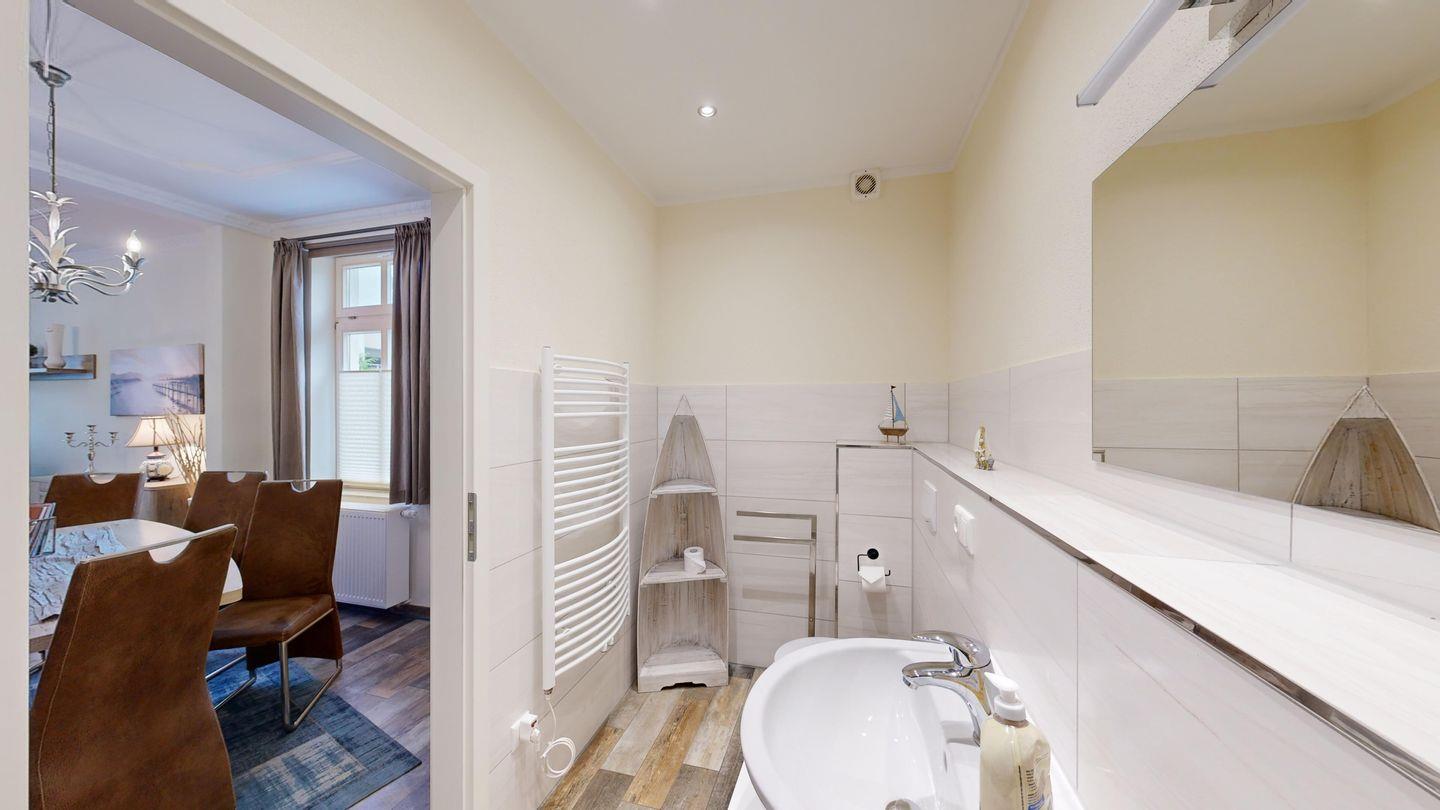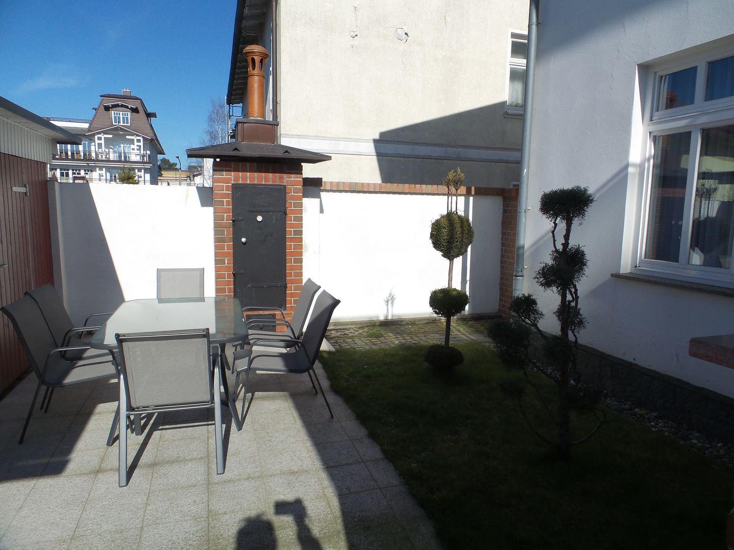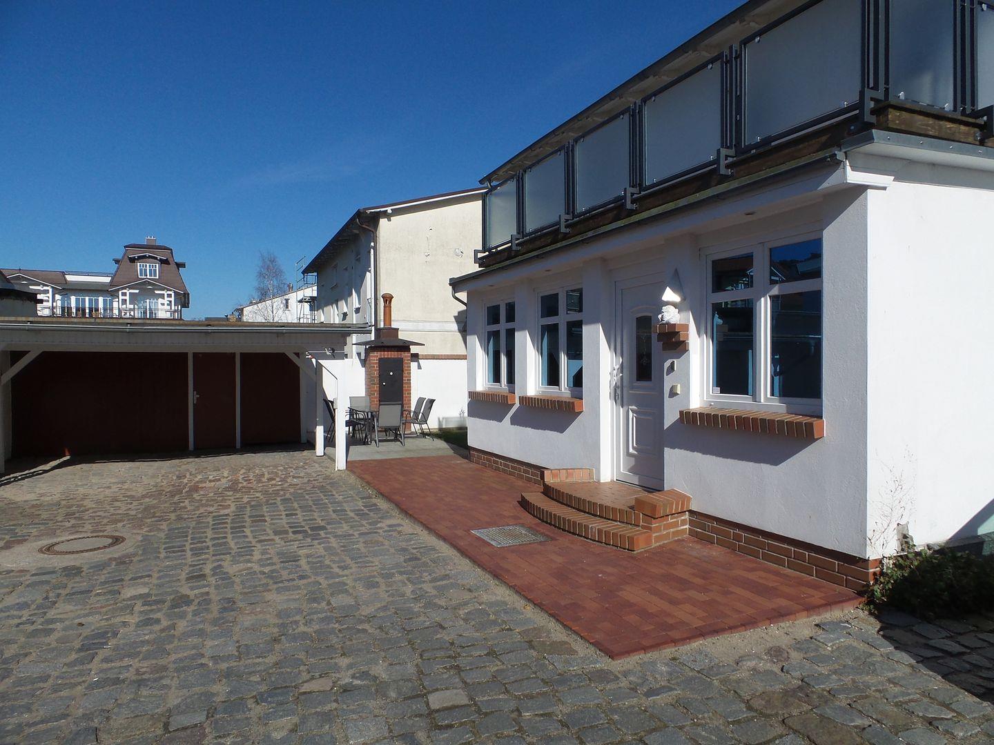Große Ferienwohnung in Binz mit 2 Schlafzimmern, 2 Bädern, Terrasse und 2 Parkplätzen, nur 300 m vom Strand entfernt.