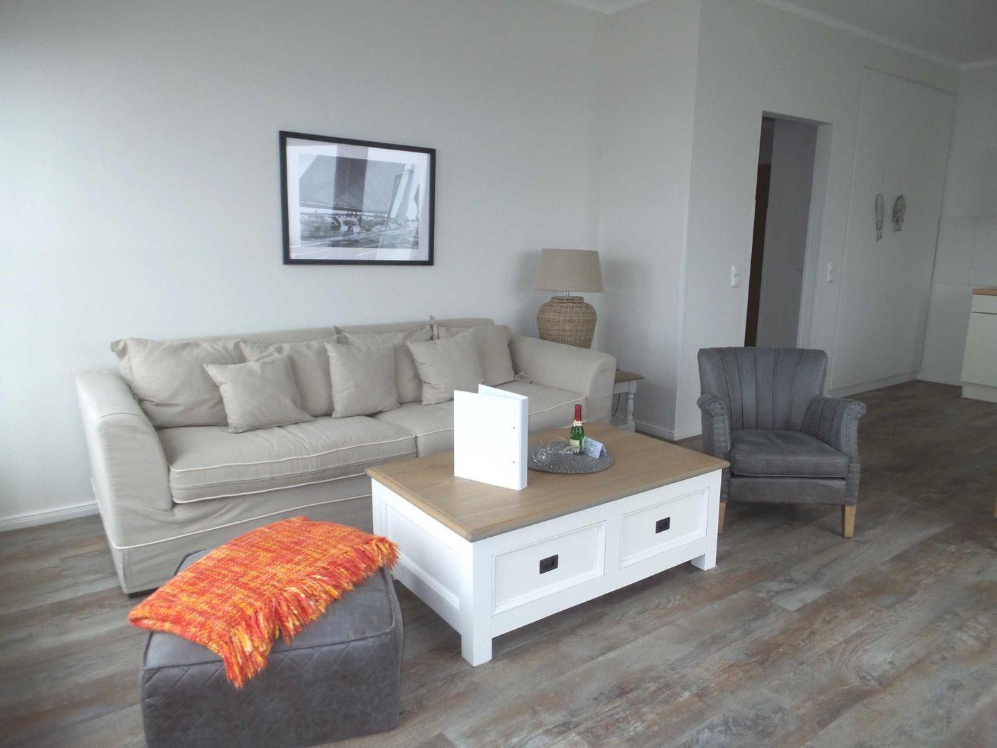* Helles, großes Wohnzimmer mit Couchgarnitur (Schlafcouch für 1-2 Personen), Sessel, Flachbild-TV, Radio, Leseecke, Internetzugang (WLAN inkl.), Esstisch