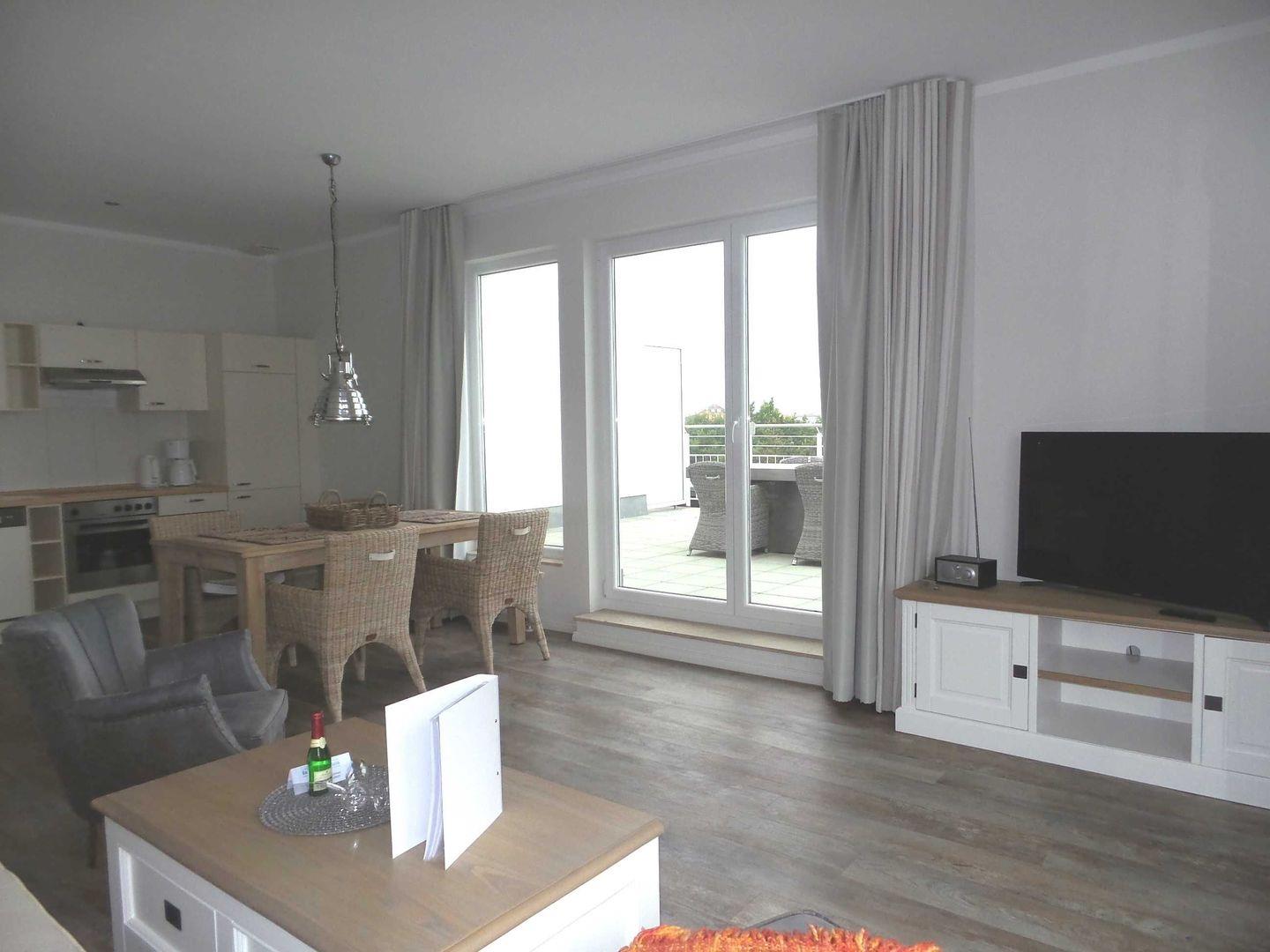 Exklusive Ferienwohnung mit großer Sonnenterrasse für 2-4 Personen und hochwertiger Möblierung im 4. OG mit 1 Schlafzimmer (2 Zimmer / 80 m²):