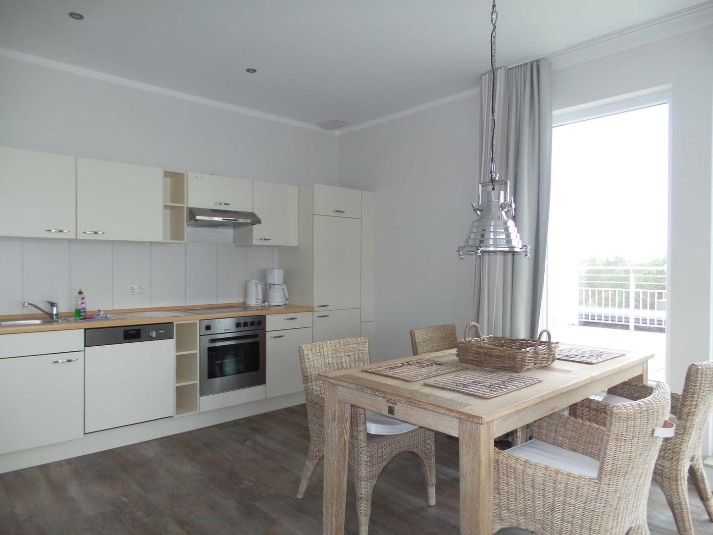 * Küche mit Ceranfeld, Kühlschrank, Backofen, Spülmaschine, Toaster, Wasserkocher, Kaffeemaschine