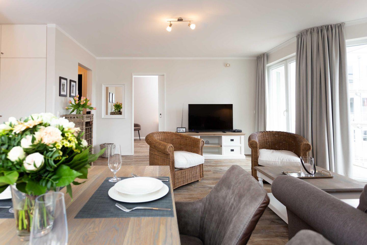 Moderne Ferienwohnung in Binz mit Sauna, Fitnessraum, Balkon und nur 50 m vom Strand entfernt.