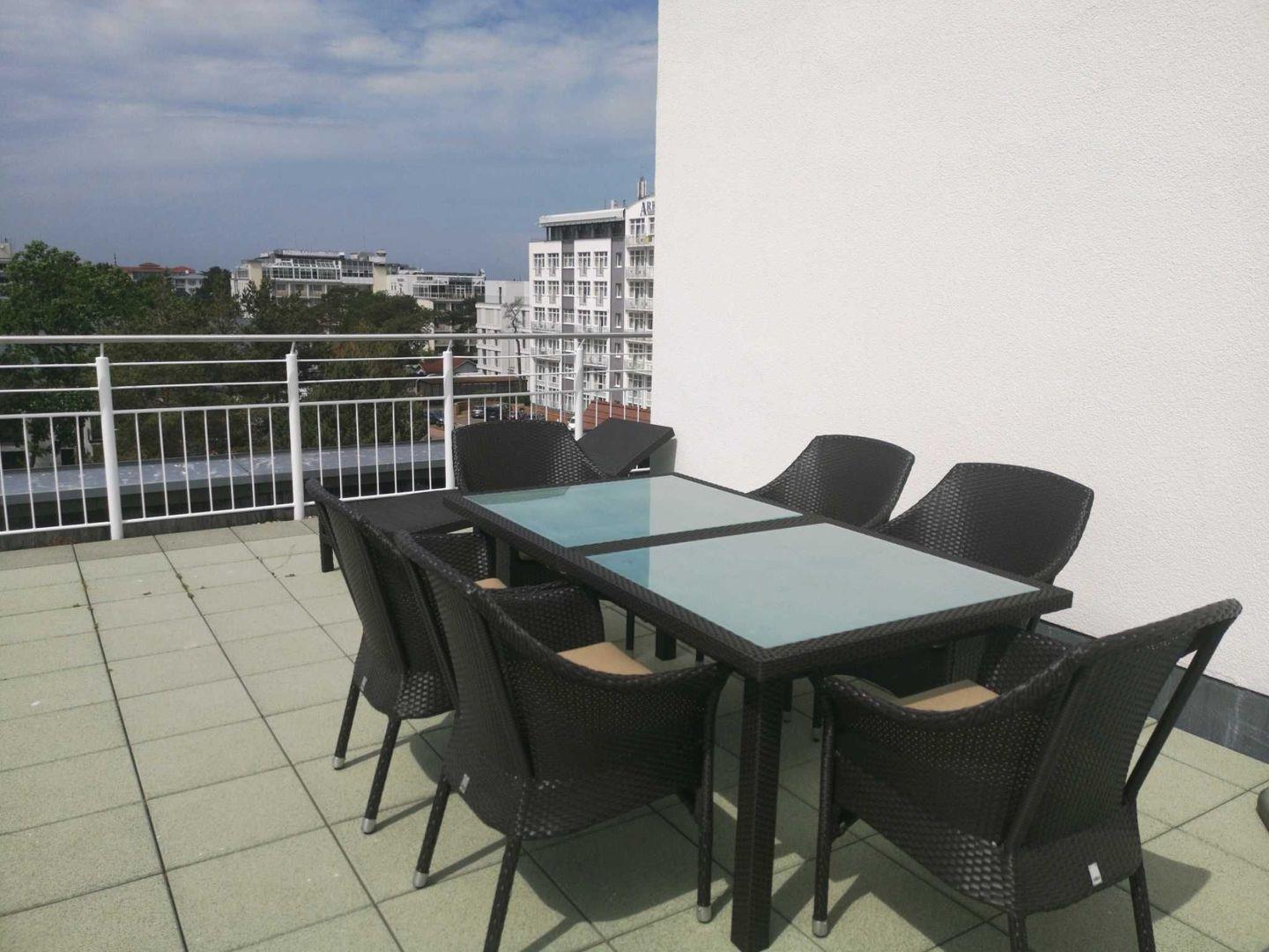 Moderne Ferienwohnung in Binz mit Sauna, Fitnessraum, Fahrstuhl und großer Terrasse nur 50 m vom Strand entfernt.