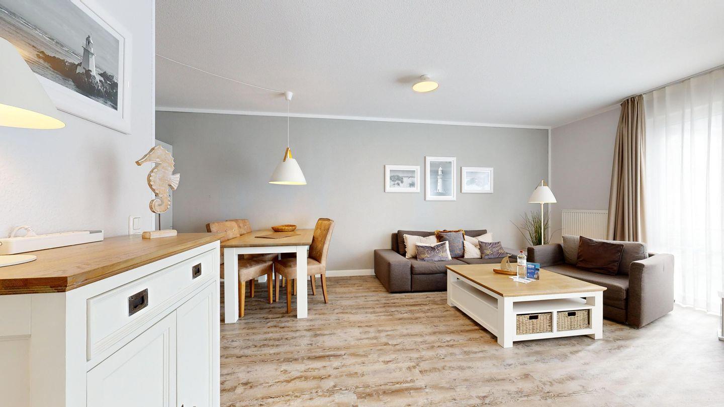 * Wohnzimmer mit Couchgarnitur, 1 Sessel (ausziehbar), Flachbild-TV, Radio, Internetzugang (WLAN inkl.), Esstisch