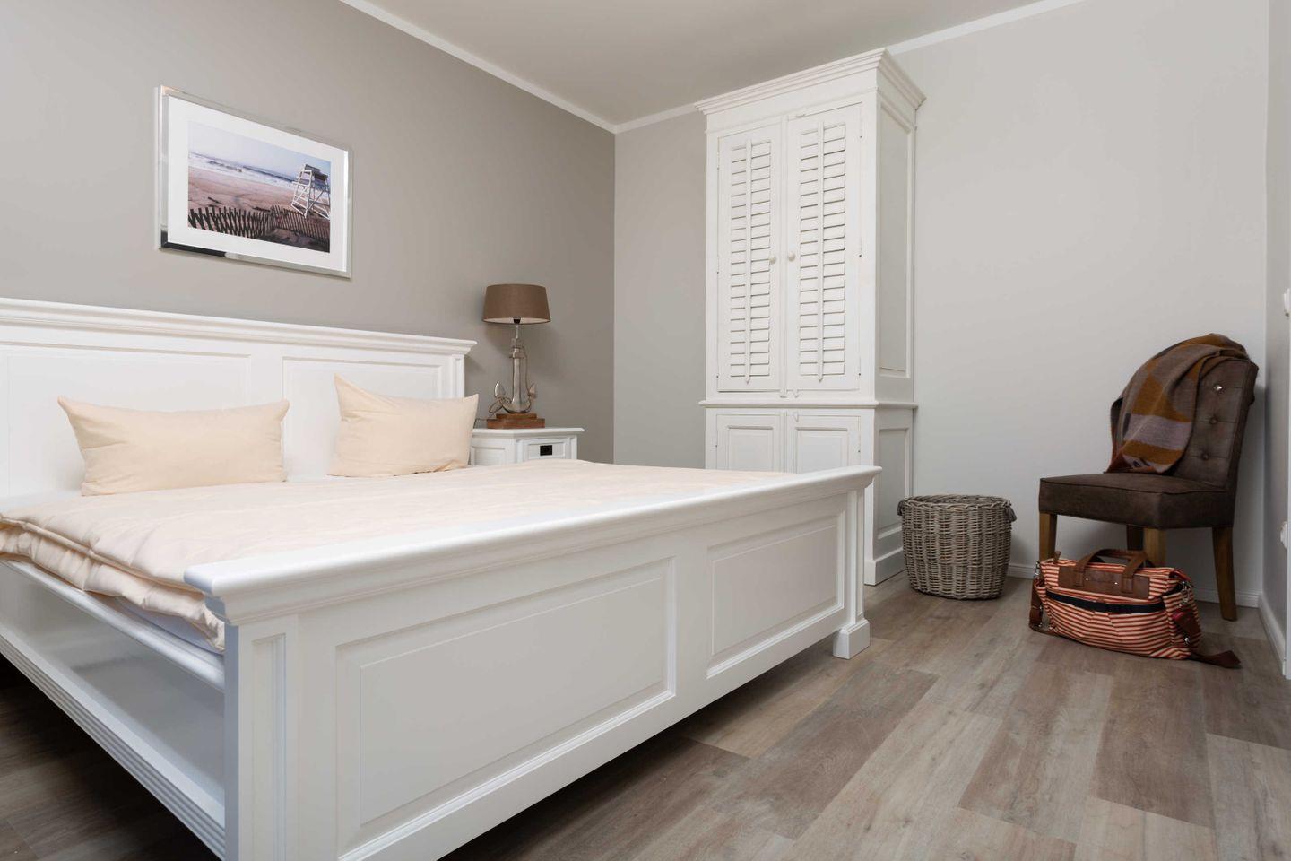* 1 Schlafzimmer mit einem Doppelbett, Kleiderschrank und TV