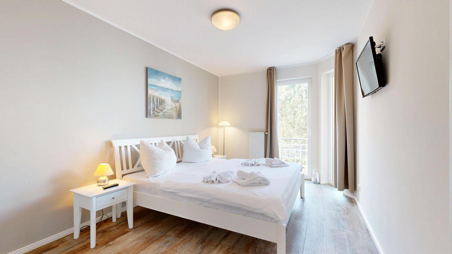 * 1 Schlafzimmer mit einem Doppelbett, Kleiderschrank, TV