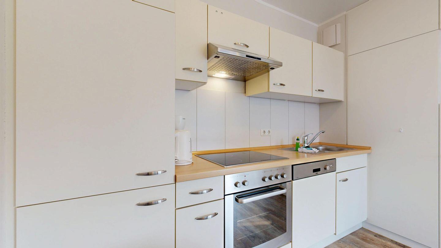 * Küche mit Ceranfeld, Kühlschrank mit Gefrierfach, Backofen, Mikrowelle, Spülmaschine, Toaster, Wasserkocher, Kaffeemaschine