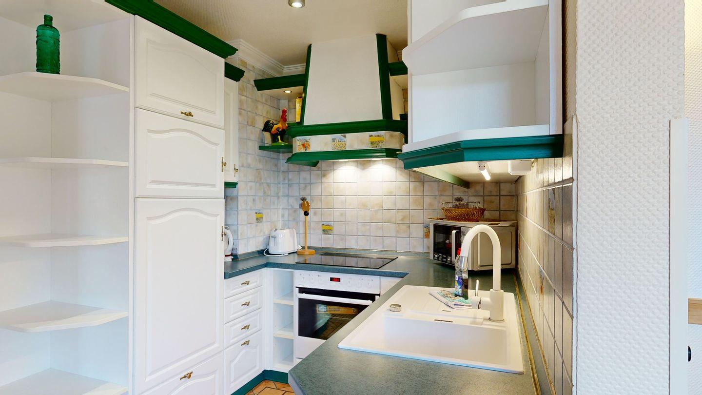 * Komfortable Küche: Ceran-Herd mit Backofen, Spülmaschine, Mikrowelle, Gefriermöglichkeit, Wasserkocher, Toaster und Kaffemaschine