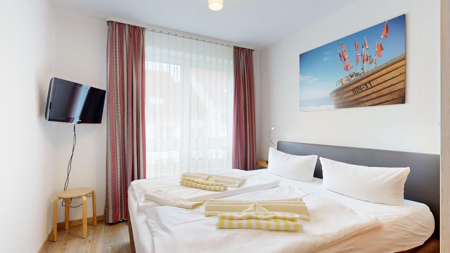 * 1 Schlafzimmer mit einem Boxspringbett (Doppelbett) und TV