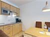 * Küchenzeile mit Spülmaschine, Ceranfeld, Mikrowelle, Kaffeemaschine, Toaster und Kühlschrank mit Gefrierfach