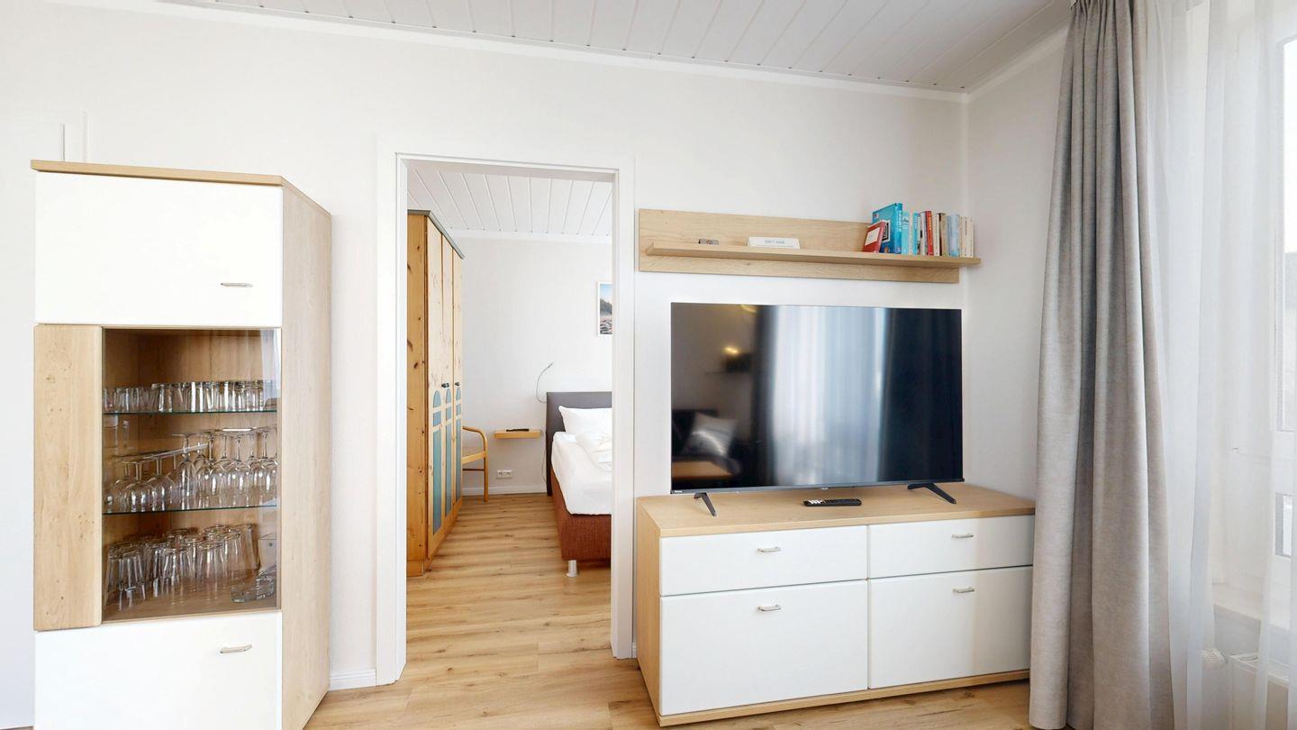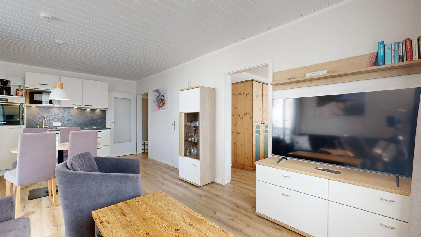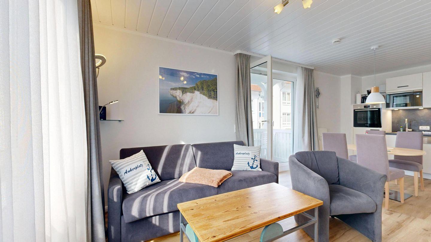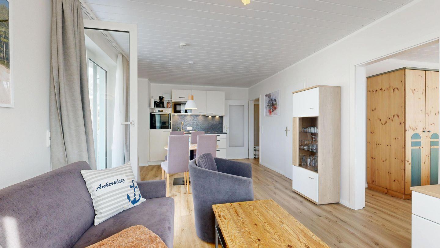 * Wohnzimmer: Couchgarnitur (Schlafgelegenheit für 2 Personen), Kabel-TV, Stereoanlage, Internetanschluss-WLAN, Esstisch