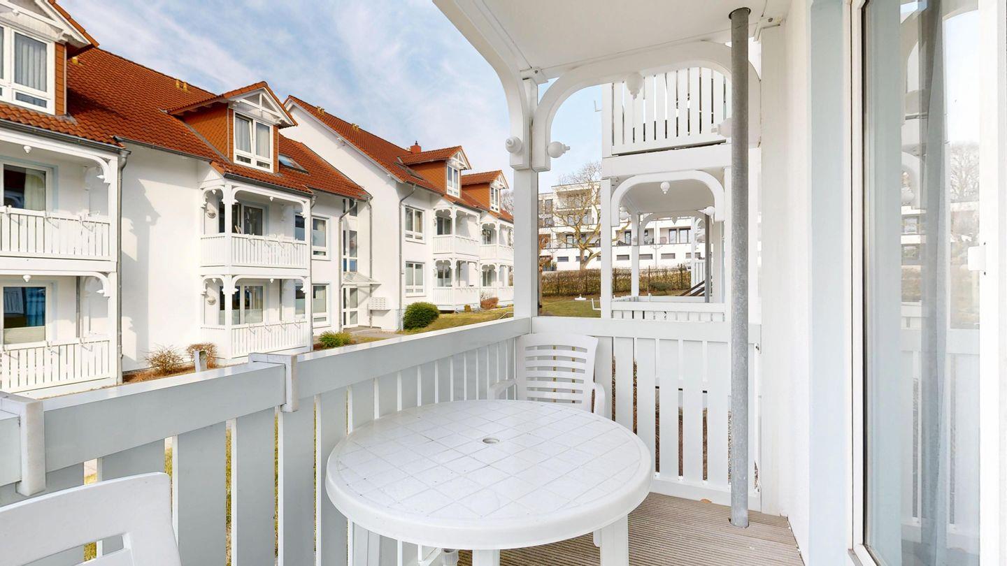 * möblierter Balkon