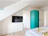 * 1 Schlafzimmer mit einem Boxspringbett (Doppelbett) und TV
